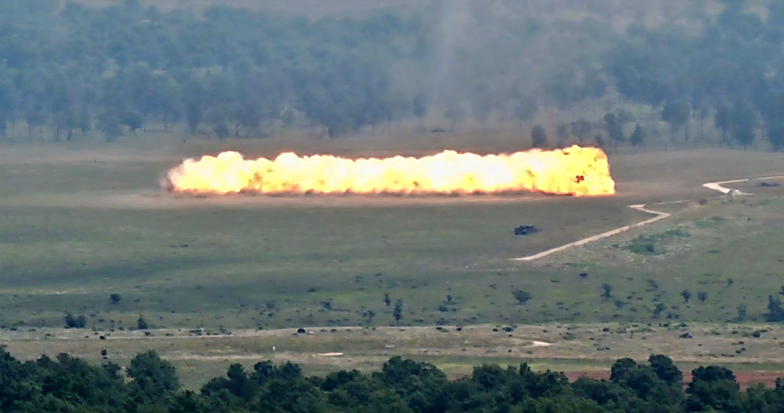 미 육군 469 보병 전투 공병중대와 402 전투 공병중대 소속 병사들이 2025년 8월 3일 위스콘신주 Fort McCoy의 North Post 지역에서 지뢰 제거 선형 폭약 작전(MICLIC Mine Clearing Line Charg )을 이용한 대규모 폭발 작전을 수행했다. 두 공병중대는 육군 예비군 소속으로 Fort McCoy 에서 정기적으로 훈련을 진행한다. MICLIC는 육군과 해병대가 지뢰밭을 돌파하기 위해 사용하는 돌파시스템이다.