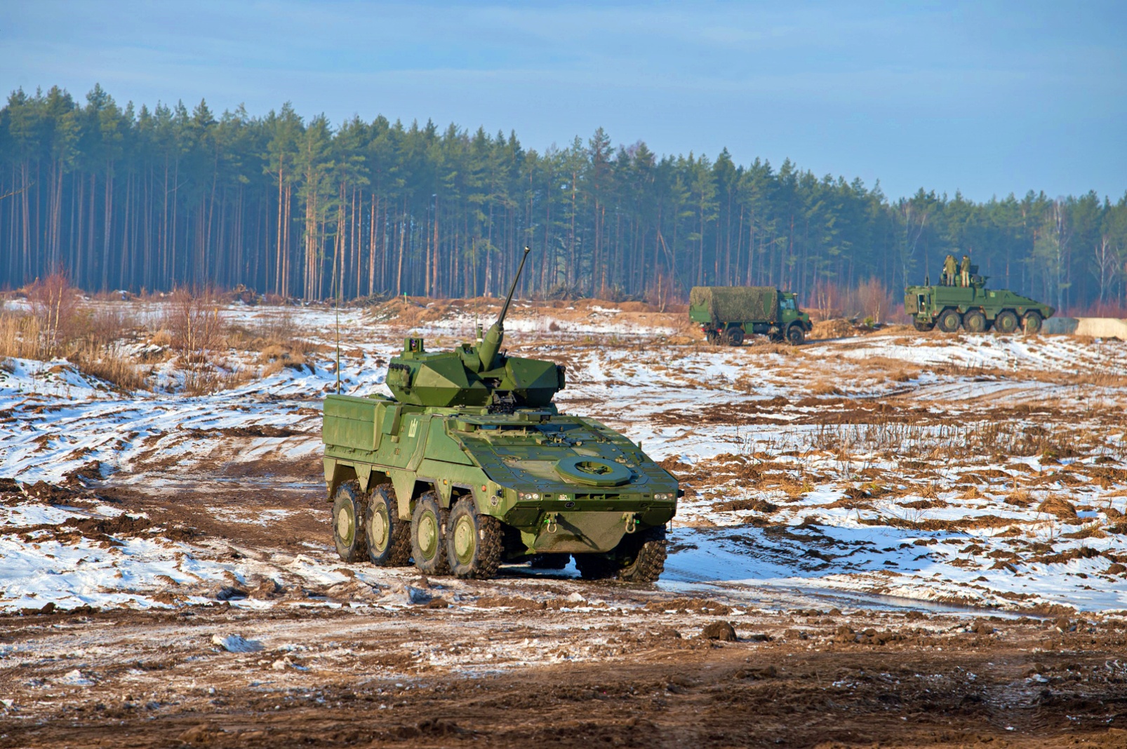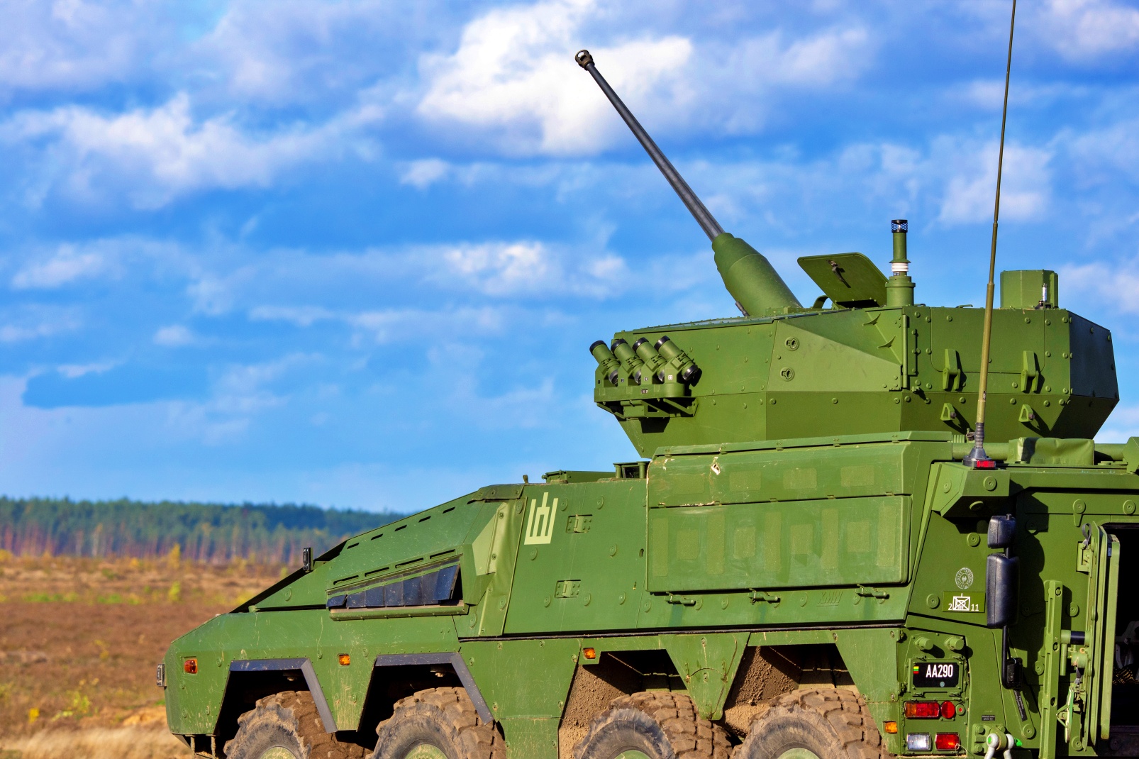 리투아니아 지상군의 핵심은 Boxer IFV로 리투아니아군에서 "Vilkas"(Wolf)로 제식화됐다. 리투아니아가 획득한 Boxer IFV 변종은 완전히 안정화된 30mm Mk44 Bushmaster II 기관포, 두 개의 Spike-LR 대전차 유도 미사일(ATGM) 발사기 및 7.62mm 동축 기관총이 장착된 이스라엘 Samson Mk II 무인 포탑을 갖추고 있습니다. 최신 조준 시스템을 통해 주야간 모두 정확한 사격이 가능하고 포탑 양쪽에 설치된 4개의 연막탄 발사기는 IFV의 위치를 일시적으로 숨길 수 있다.