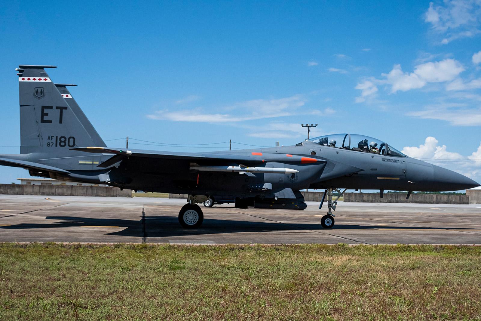 F-15E가 처음으로 AIM-120D3을 장착하고 실사격에 나서고 있다.