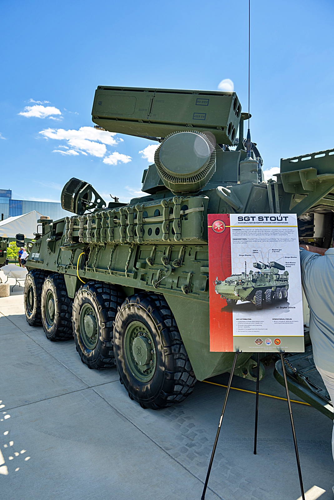 2024년 6월 15일 버지니아주 Fort Belvoir에 위치한 미국 육군 국립박물관에서 열린 제249회 육군 창설 기념 축제에서 Sgt. Stout M-SHORAD 스트라이커 전투 차량이 공개됐다.M-SHORAD는 M-1126 Stryker 전투 차량을 차대로 사용한다. M-SHORAD의 전용 대공 방어 포병(ADA) 및 비전용 대공 방어 능력은 저고도 공중 위협을 파괴, 중립화, 또는 억제함으로써 중요한 고정 및 반고정 자산과 기동 부대를 방어하기 위해 이동 및 기동 능력을 제공한다.