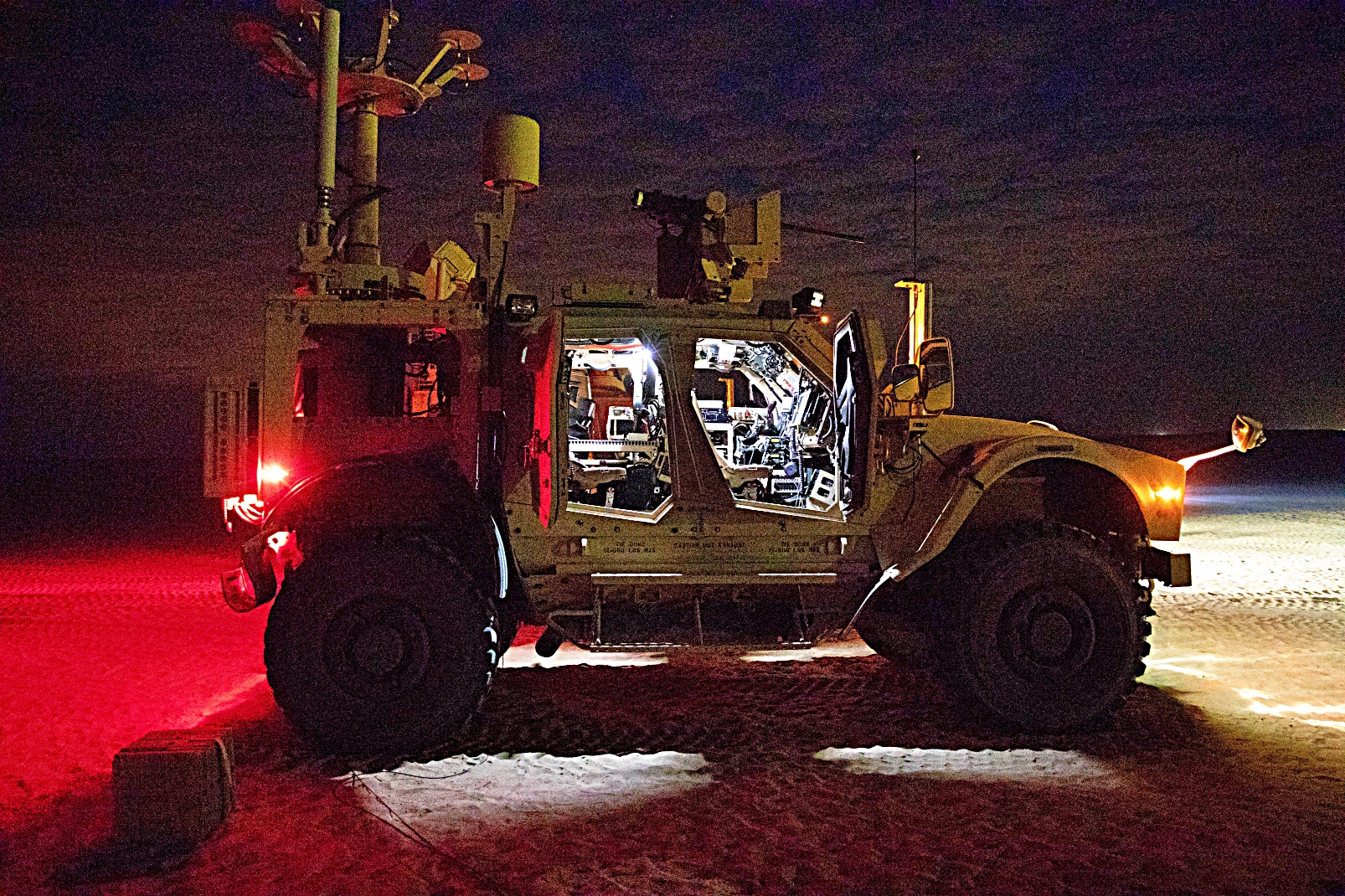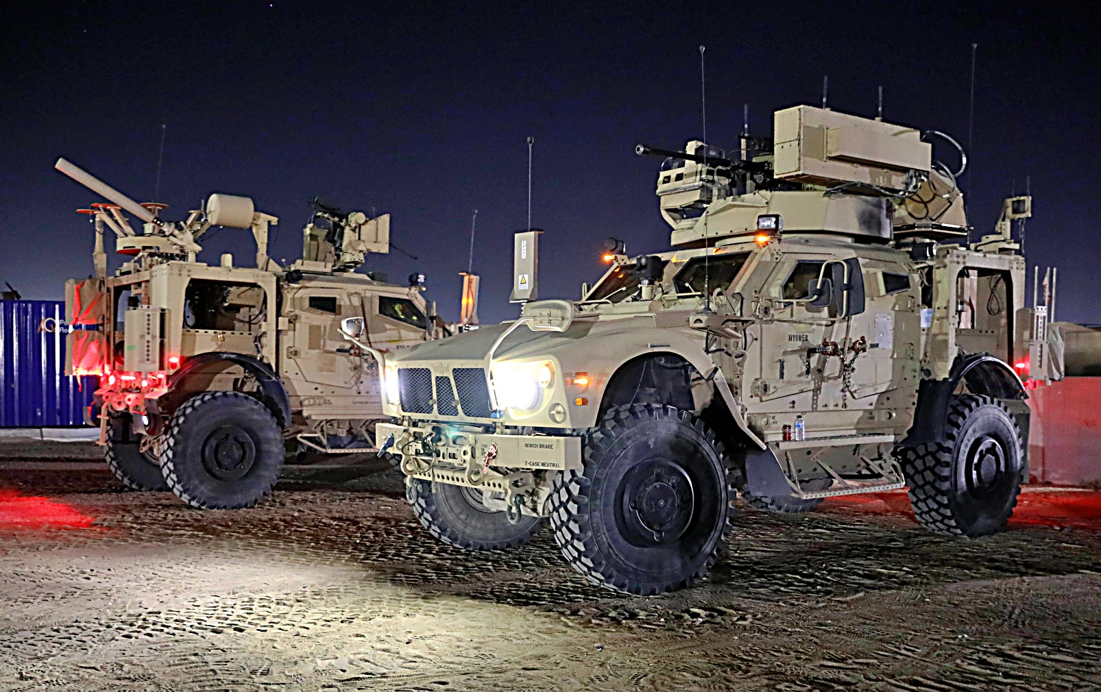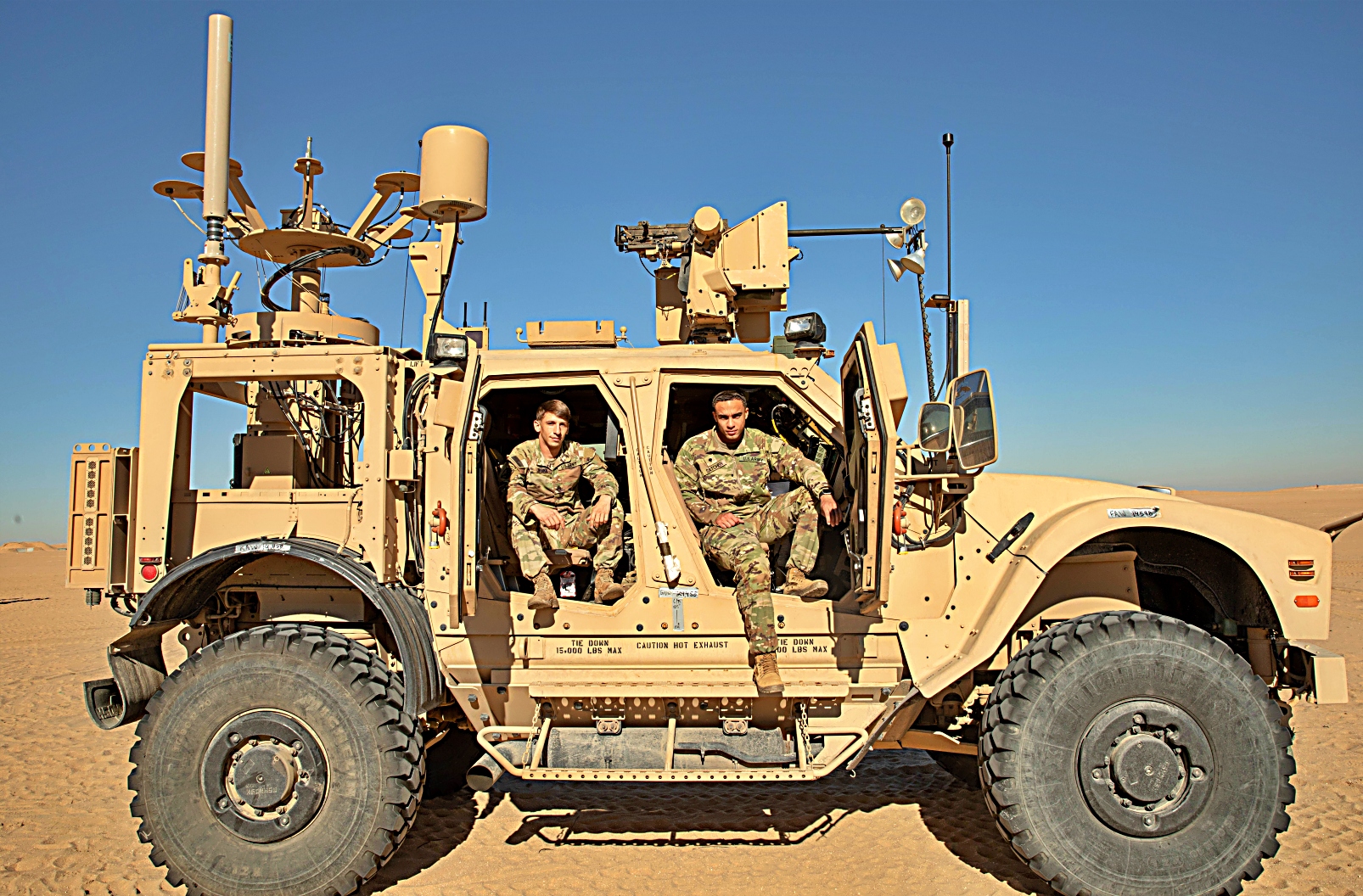 미 제4보병사단 제1스트라이커여단전투팀 소속 장병들이 2022년 1월 25일 쿠웨이트 Camp Buehring에서 이동식 저고도 소형 무인항공기 통합방어체계(M-LIDS) 훈련을 실시하고 있습니다. 훈련에 참여한 장병들은 차량에 탑재하여 연합합동태스크포스(CJTF)의 '내재적 결의 작전(Operation Inherent Resolve)'의 자문, 지원 및 활성화 임무를 지원하기 위해 적대적인 드론이나 기타 무인 항공기를 표적 삼아 무력화하거나 파괴하도록 설계된 M-LIDS(Mobile Low, Slow, Small Unmanned Aerial Vehicle Integrated Defense System)에 대한 훈련을 받았다.