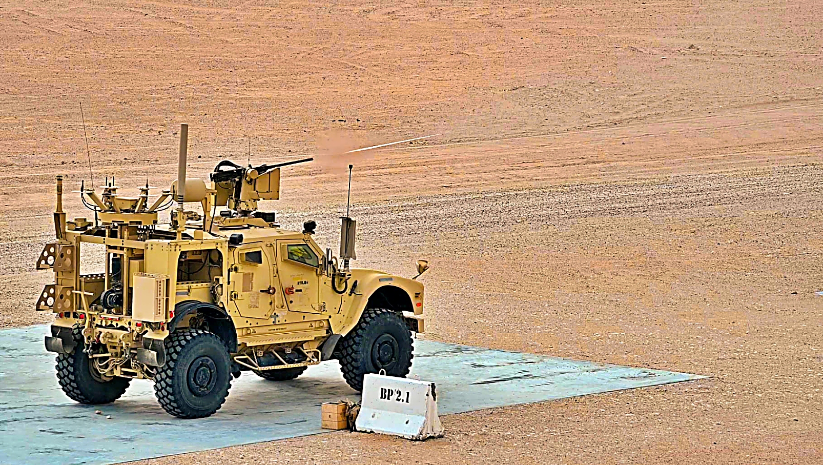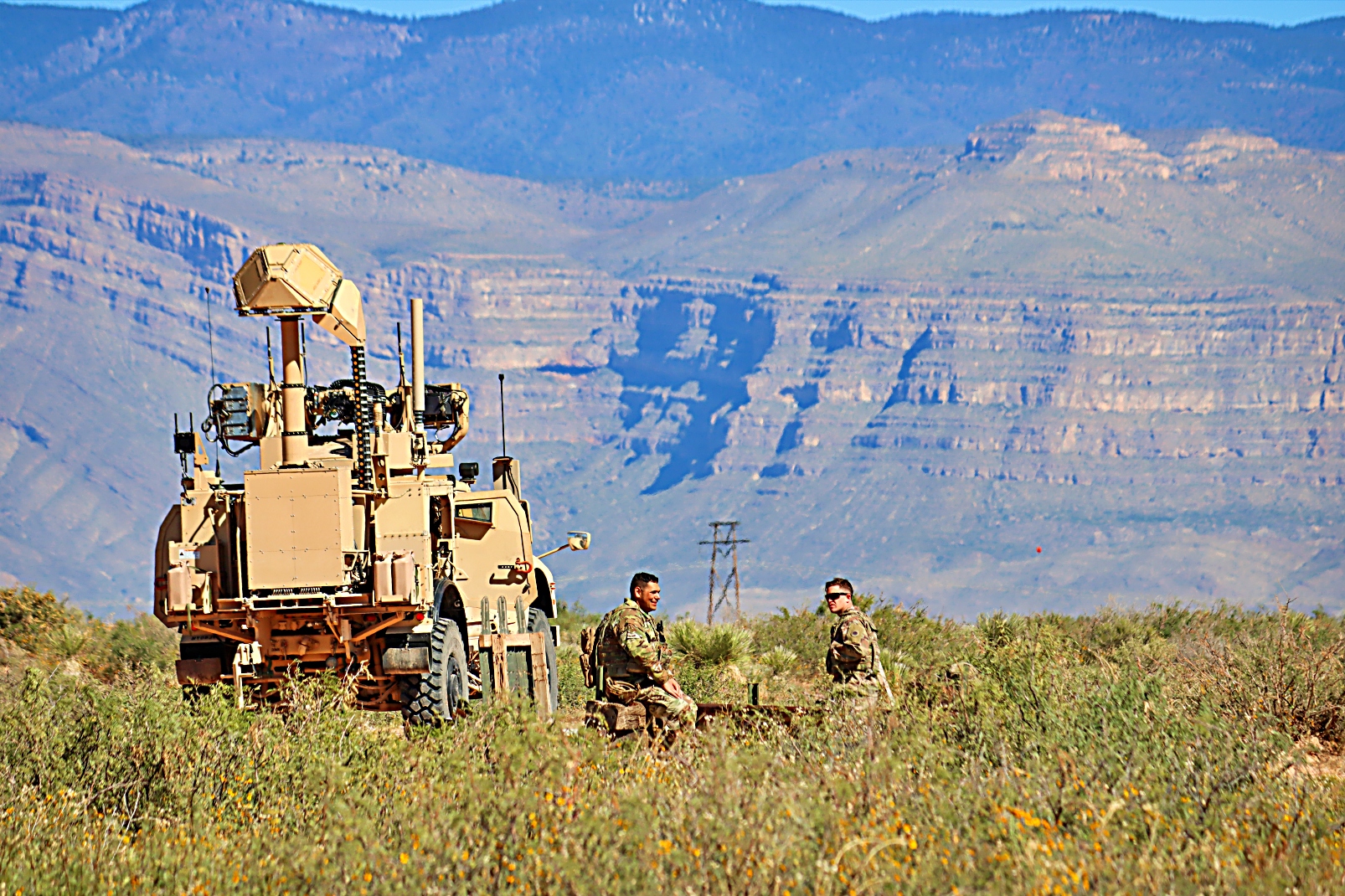 미 육군 제37보병여단 전투팀 소속의 이동식 저고도 소형 무인항공기 통합방어체계(M-LIDS)가 2022년 10월 24일 텍사스주 Fort Bliss 인근에서 실시된 적 무인항공기(UAS) 대응 훈련 중 공중 표적을 공격하고 있다. 여러 대(對) 무인항공기(UAS) 무기 및 시스템을 탑재한 M-LIDS는 장병들이 적의 전투 노력보다 한 발 앞서 나갈 수 있도록 지원하며, 미군의 지상 및 공중 우위를 유지하는 데 기여한다.