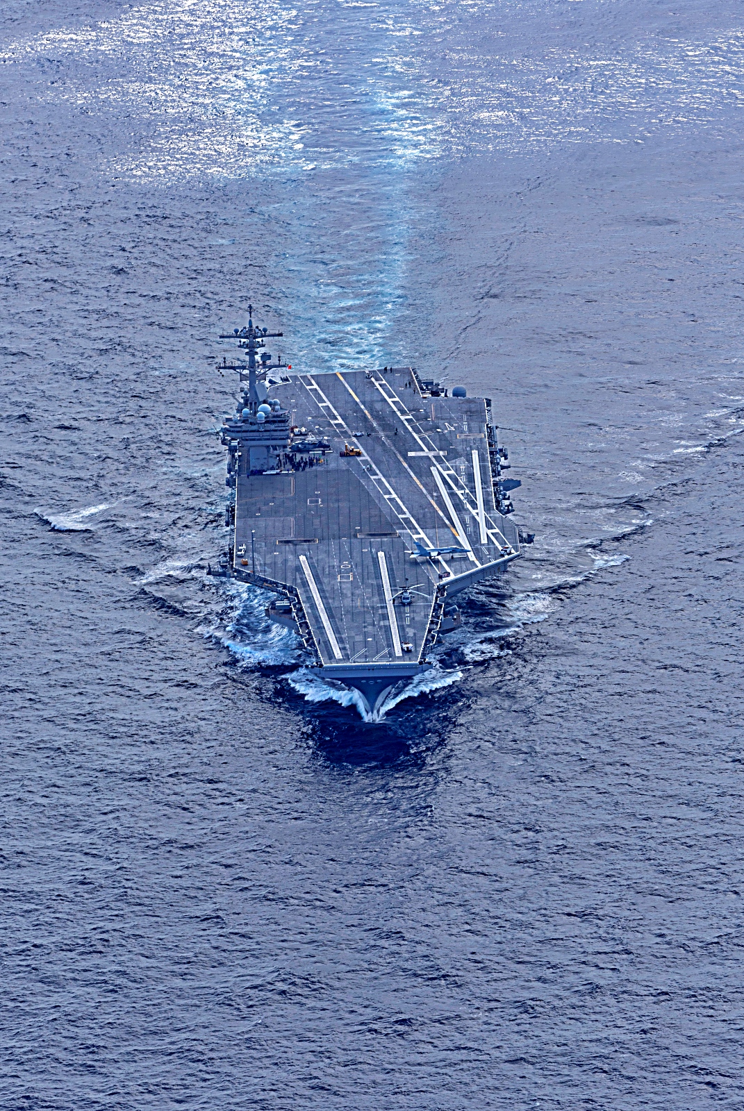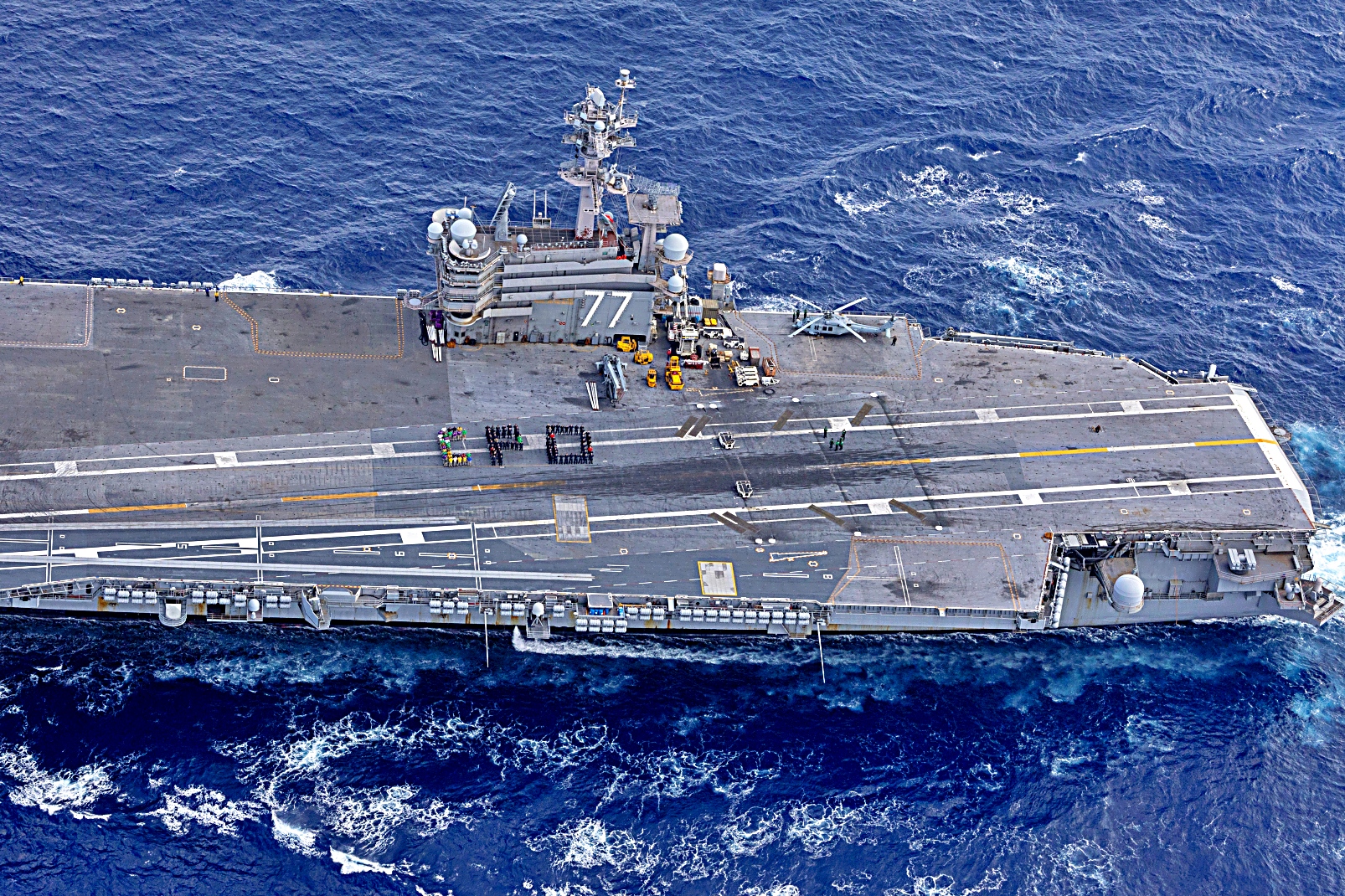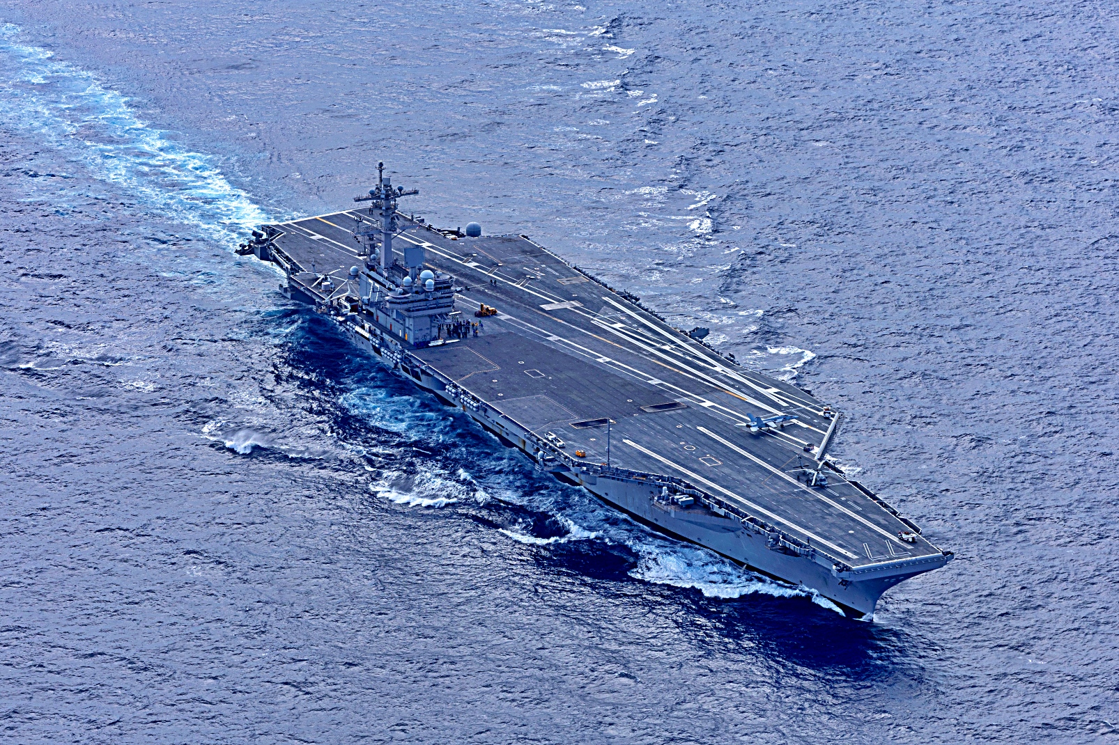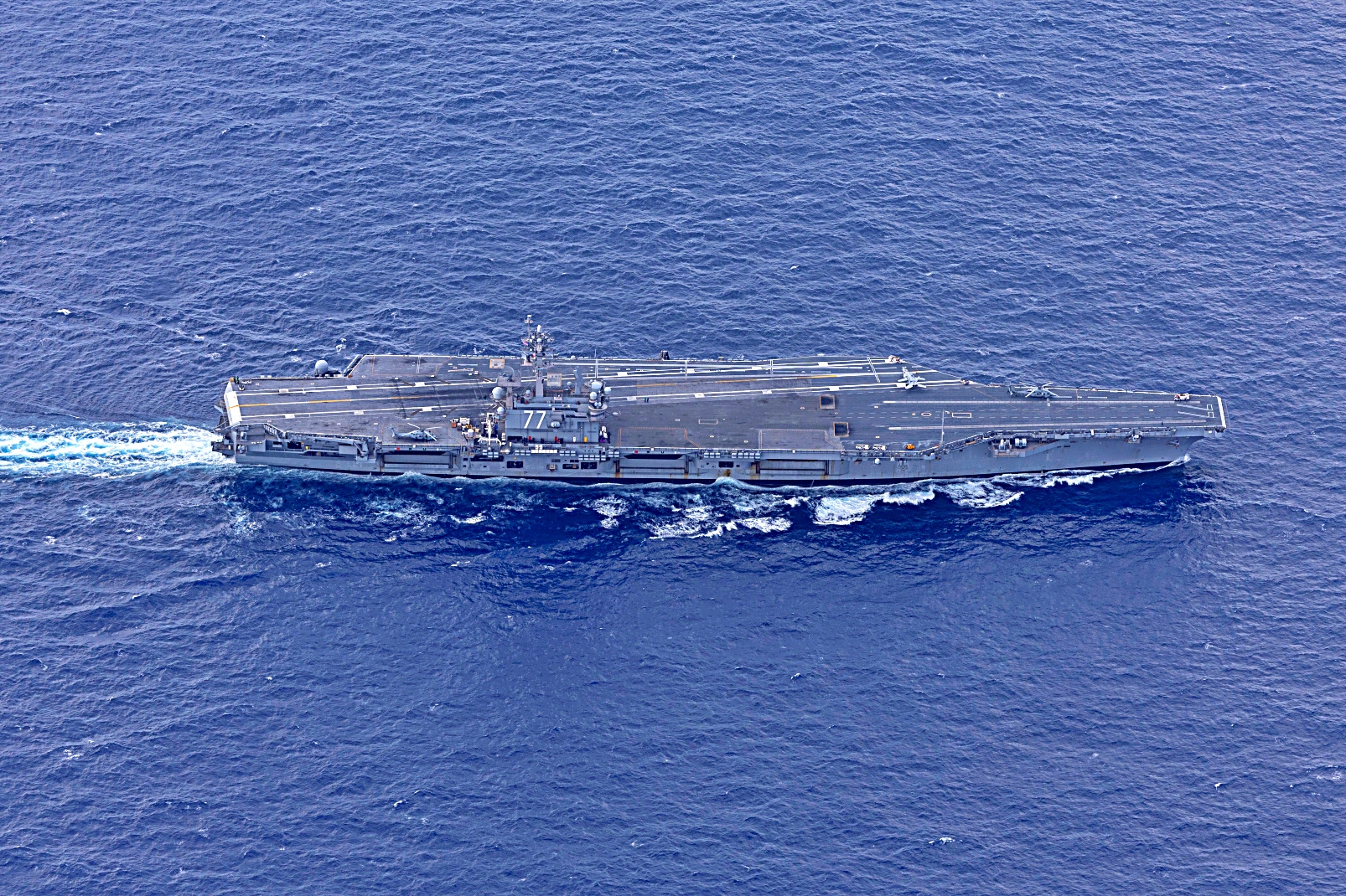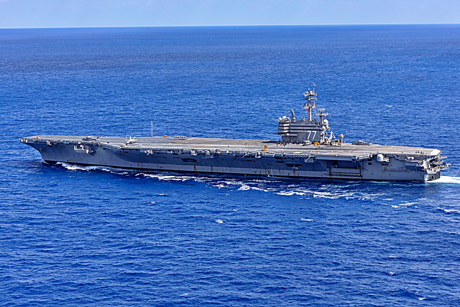 2025년 3월 28일 대서양에서 Nimitz급 항공모함 USS George H.W. Bush (CVN 77)함이 항공모함 자격 인증 및 정기 작전을 수행 중이다.
