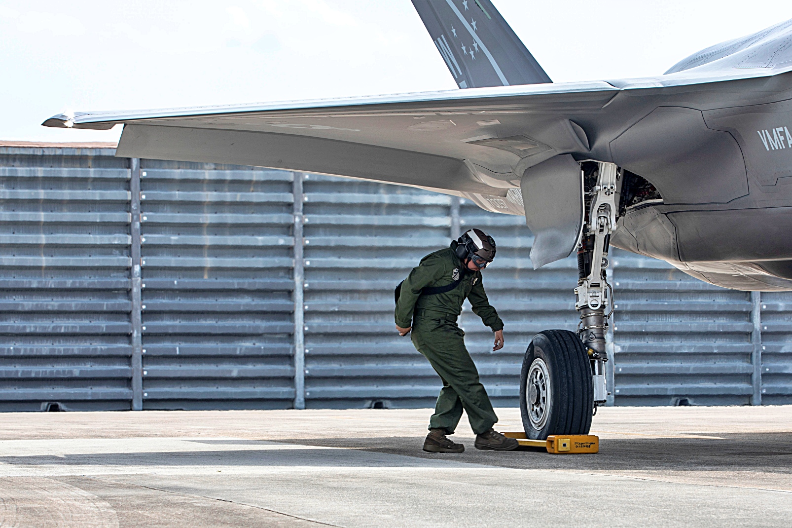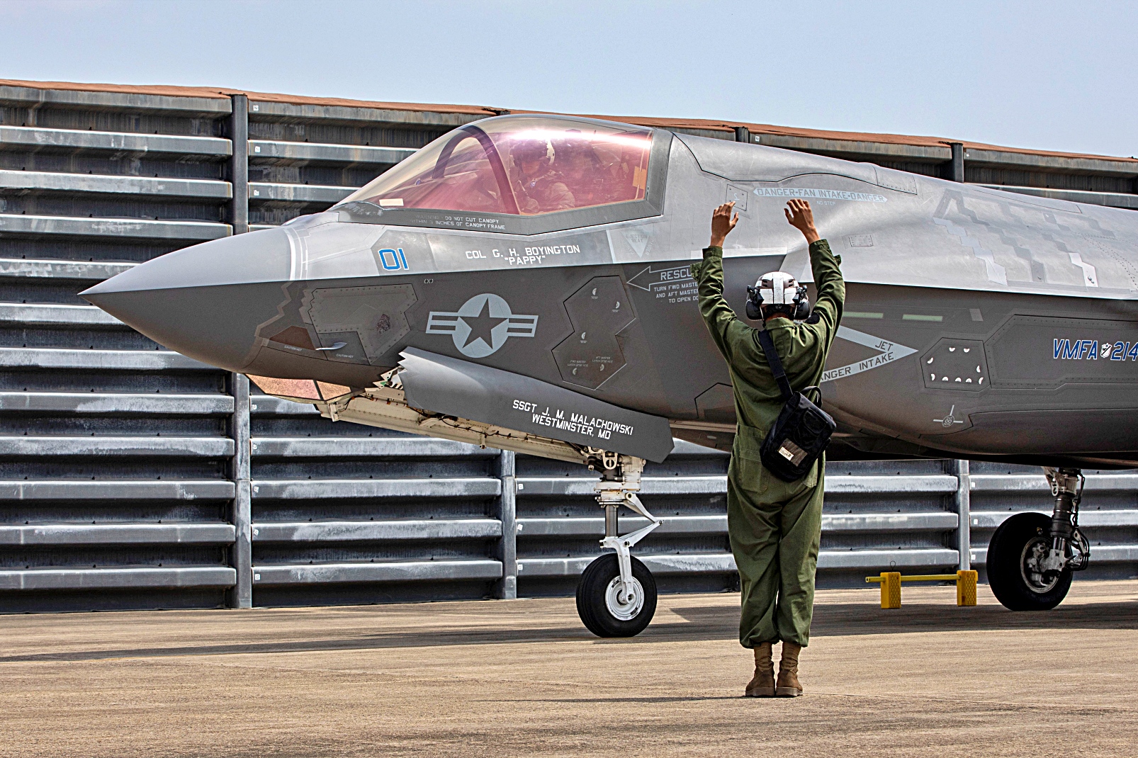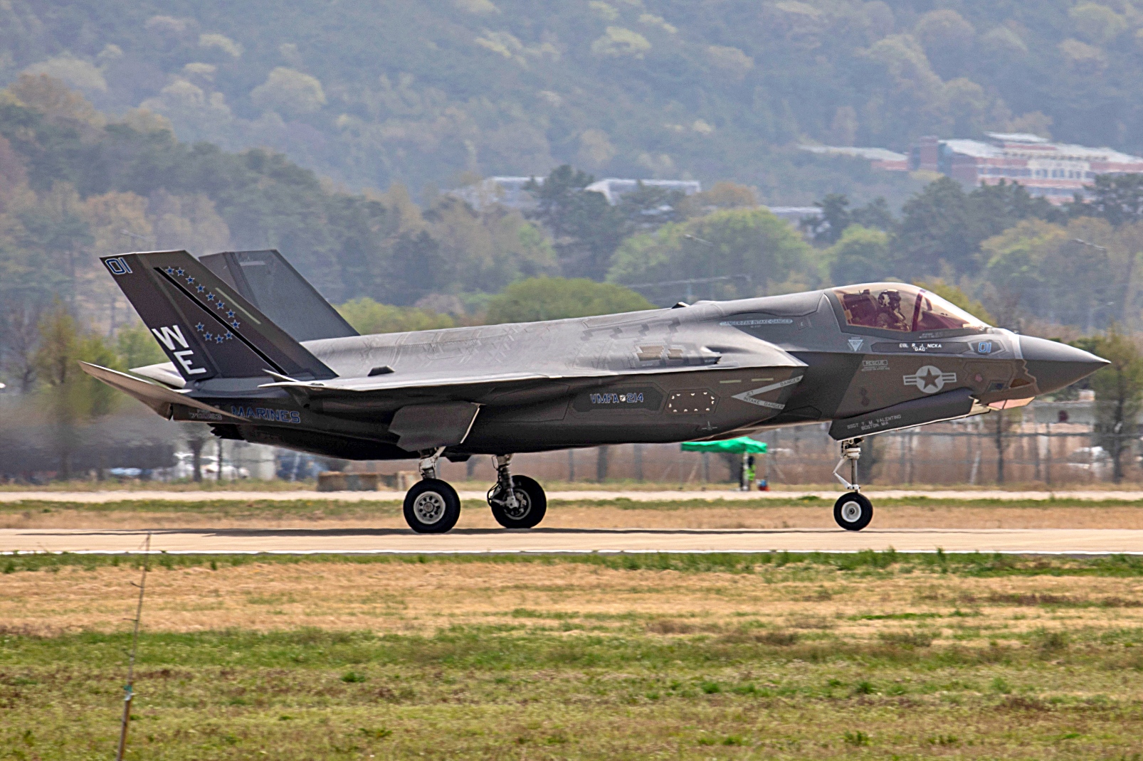 미국 해병대 제1해병항공단 12해병항공군을 지원하기 위해 일본 Iwakuni 해병항공기지에 전개한 애리조나 주 Yuma 해병대 항공 기지의 3 해병항공단 13해병항공군 소속 VMFA-214 해병전투공격비행대의 F-35B Lighting II 공격기가 2025년 4월 17일 광주 공군기지에서 ' Freedom Flag 25-1 ' 훈련에 참가하기위해 광주기지에 착륙했다.
