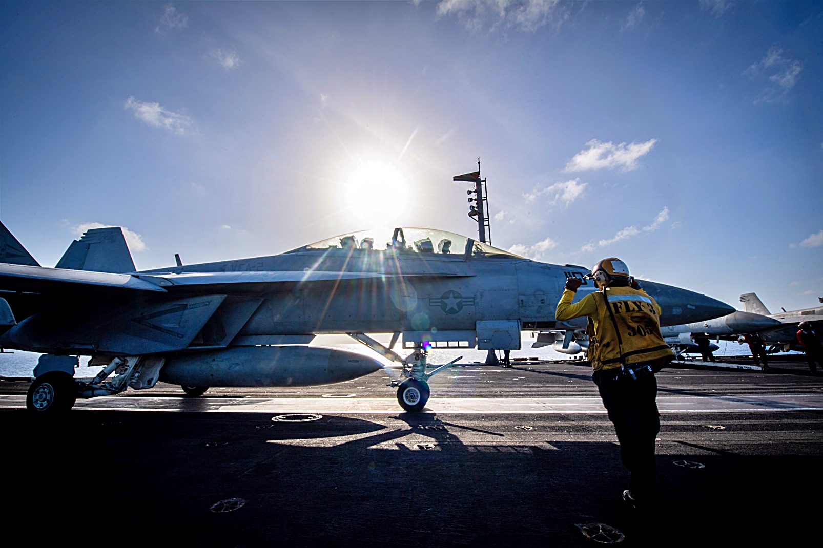 Carrier Strike Group 1의 기함으로 미 중앙사령부 관할 아라비아해에서 해상 안보 작전을 지원하고 있는 미 해군 Nimitz급 항공모함 USS Carl Vinson (CVN-70)함의 Carrier Air Wing 2 소속 함재전폭기들이 5월 15일부터 17일 사이 비행작전을 펼치고 있다.