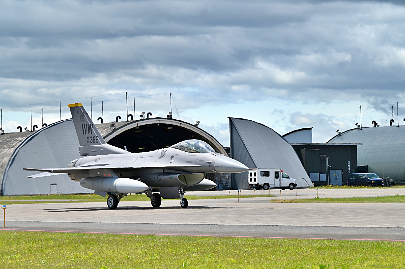 Resolute Force Pacific (REFORPAC) 2025 훈련을 지원하기 위해 주일 미국 공군 제14 전투비행대대에 소속된 F-16 전투기가 2025년 6월 27일 일본 Misawa 공군기지에서 활주로로 이동하고 있다. Resolute Force Pacific (REFORPAC) 2025는 미국 태평양 공군이 주관하는 최대 규모의 비상 대응 훈련으로, 7월 10일부터 8월 8일까지 인도-태평양 지역 내 양자 협력 국가들이 어려운 환경에서 적응해 임무 수행 능력을 유지할 수 있는지 검증할 것이다.