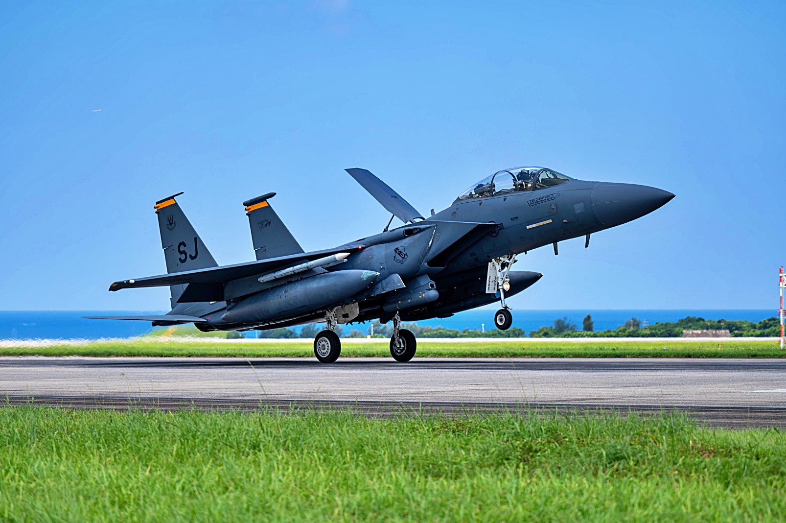 오키나와 Kadena 기지에 순환배치된 미국 공군 제336 원정전투비행대대 소속 F-15E Strike Eagle 전투기와 유타 주 Hill 공군기지에서 전개한 제 421 원정전투비행대대 소속 F-35A Lightning II 공격기가 2025년 7월 1일 일본 Kadena 공군기지에서 임무 비행을 수행하고 있다. Kadena 공군기지에서 최신형 전투기들을 순환 배치하여 18 전투비행단이 미국 동맹국의 방어와 자유롭고 개방된 인도-태평양 지역을 보장하기 위해 유연성을 유지하고 치명적이고 신뢰할 수 있는 공중전력을 제공할 수 있도록 준비 태세를 유지하는 데 기여하고 침략 행위를 억제할 수 있도록 한다.