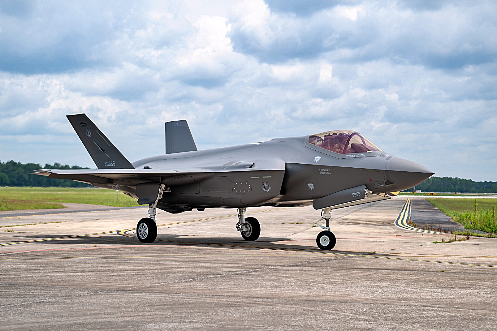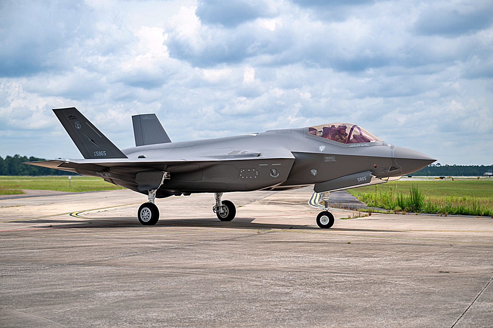 플로리다 주방위군 제125 전투비행단에 영구 배치되는 F-35A Lightning II 공격기 중 첫 번째 기체가 2025년 7월 9일 플로리다 주 Jacksonville 주방위군 기지에 착륙한 후 활주로에서 이동하고 있다. 이번 인도식은 비행단이 F-35로 전환하는 과정에서 중요한 이정표를 나타내며, 부대의 상징적인 수직미익 표시를 갖춘 항공기의 단계적 도입을 시작했다. 제5세대 전투기를 운용하는 최신주방위공군 비행단 중 하나인 125 전투비행단은 전 세계에서 미국 및 동맹국의 작전을 지원하기 위해 공군의 유연성 있는 전투 항공 전력 제공 능력을 강화한다.