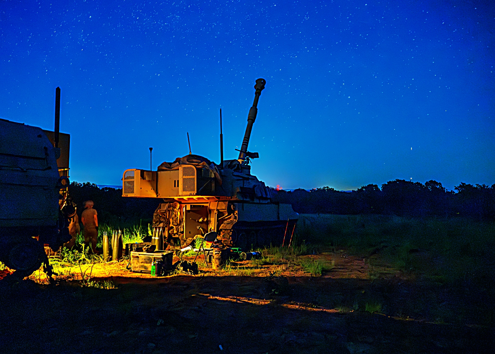 미 육군 142보병사단 야전포병여단 제2대대는 2025년 6월 19일 아칸소주 Fort Chaffee에서 야간 사격의 첫 번째 밤을 조명탄으로 시작했다. 이 조명탄은 관측점 8에 위치한 전방 관측병들이 대대가 발사한 고폭탄을 목표물에 정확히 유도할 수 있도록 한다.