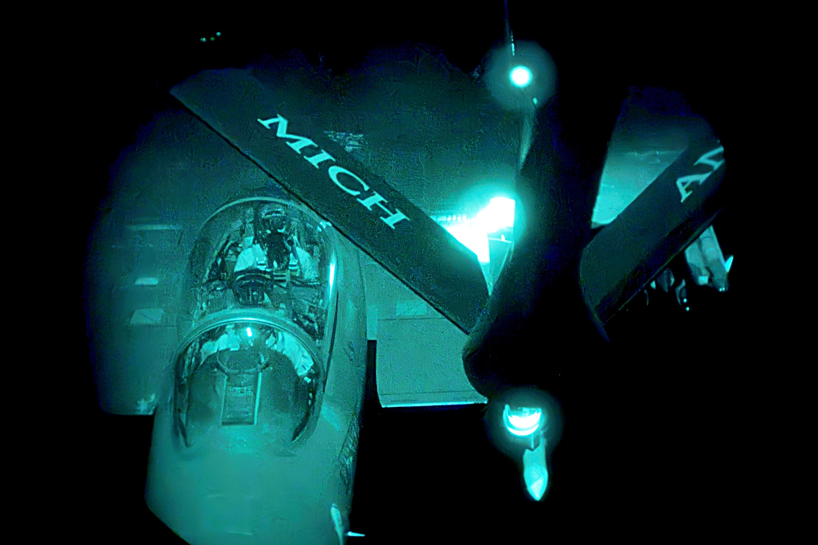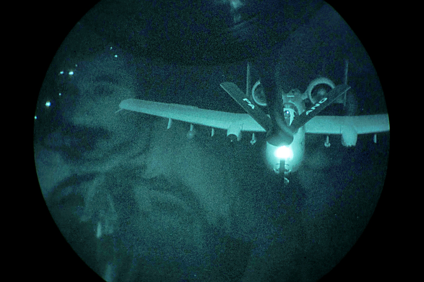 미국 중앙사령부 작전 지역 상공에서 Operation Inherent Resolve을 지원하고 있는 미국 공군 A-10 Thunderbolt II 공격기, AC-130J Ghostrider 공격기 및 F-15E Strike Eagle 전폭기가 2025년 7월 3일,4일과 7일 KC-135 Stratotanker로부터 공중 급유를 받으며 전투 순찰 임무 비행을 수행하고 있다.