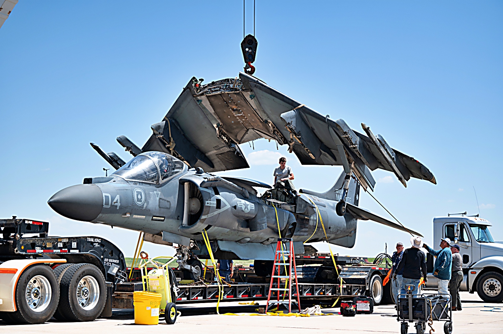 버클리는 Wings Over the Rockies와의 근접성과 전투기 수용 능력을 이유로 해리어의 도착 장소로 선정되었습니다. 460 병참준비비행대와 140 비행단의 군인들은 미국 해병대와 협력해 물류 지원과 비무장화 과정을 지원했으며, 해리어가 일반 공개에 준비되도록 항공기의 개조작업을 수행했습니다.