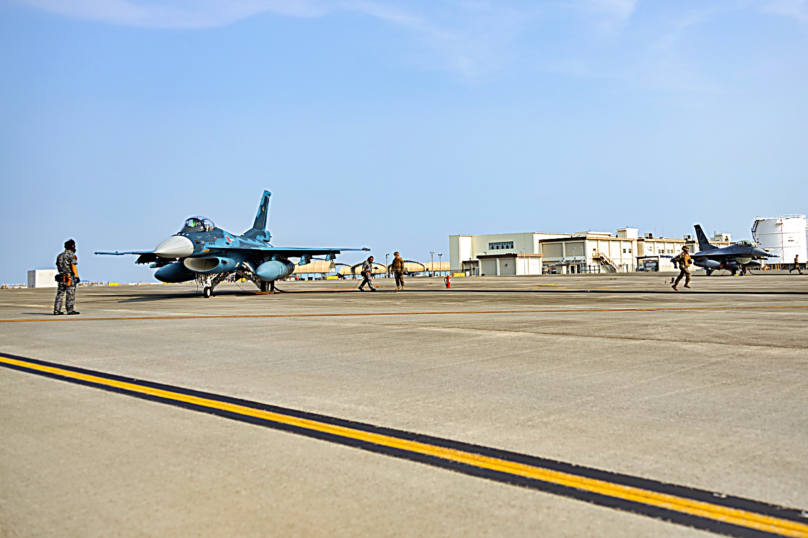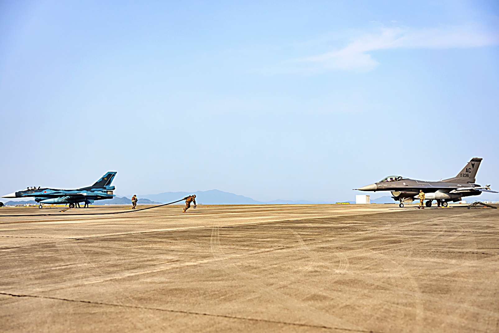일본 항공자위대 서부 공군방어사령부 제8비행단 예하 제8전술전투비행대대 소속의 F-2 전폭기와 미국 뉴저지주 애틀랜틱 시티 주방위공군기지 제177 전투비행단 소속 F-16C F-16C Fighting Falcon 전투기가 2025년 7월 15일과 16일 일본 이와쿠니 해병대 항공기지에서 진행된 ‘Resolute Force Pacific (REFORPAC) 2025’ 훈련 중 미국 해병대로부터 재급유를 받는 삼각 합동 훈련을 실시했다.