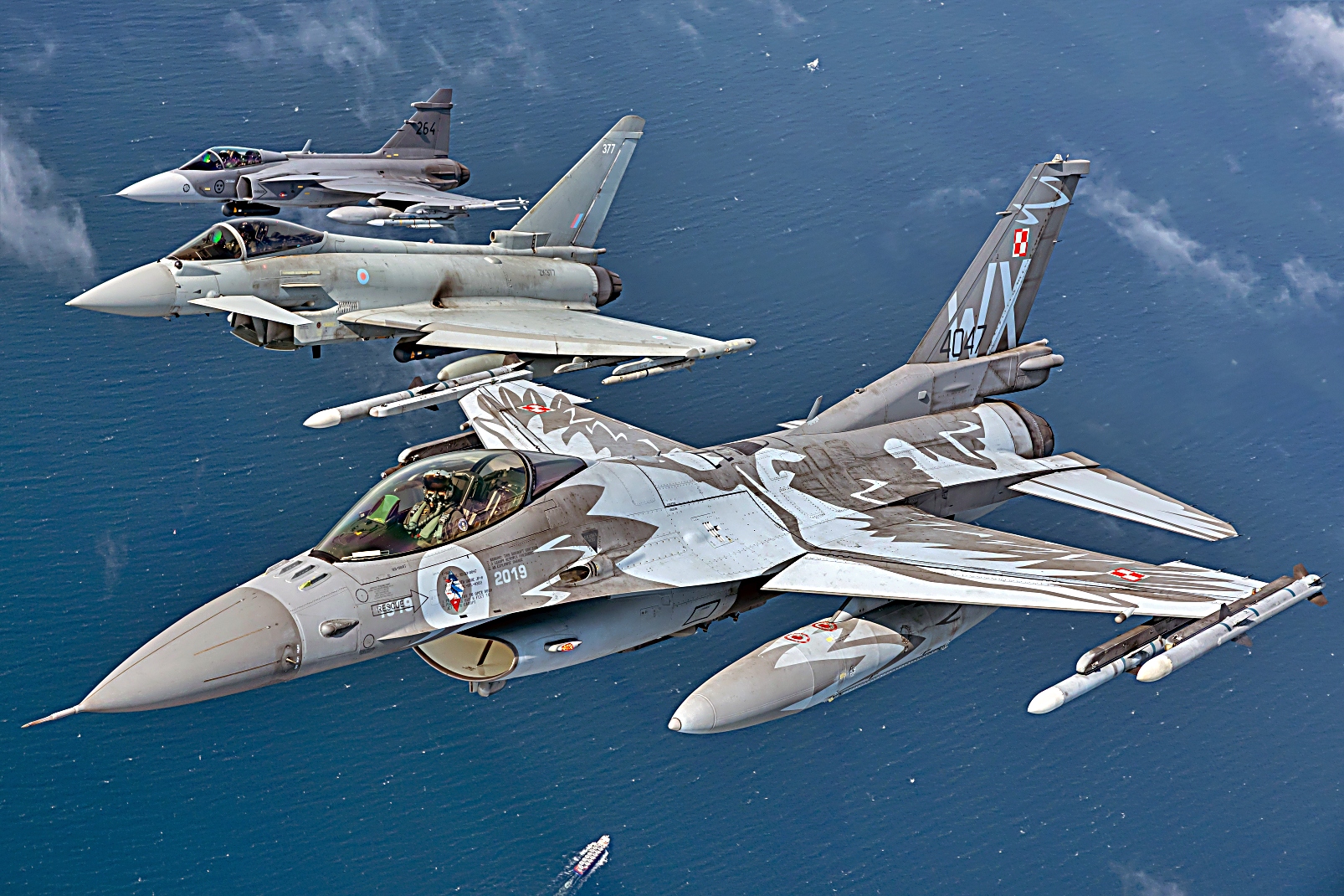 폴란드, 스웨덴 및 영국 왕립 공군 전투기들이 나토의 공중 순찰 임무에 배치되어 폴란드 상공에서 실시된 합동 훈련 중 기동성, 작전 범위 및 정밀성을 입증했다.나토 공역의 안전을 보장하는