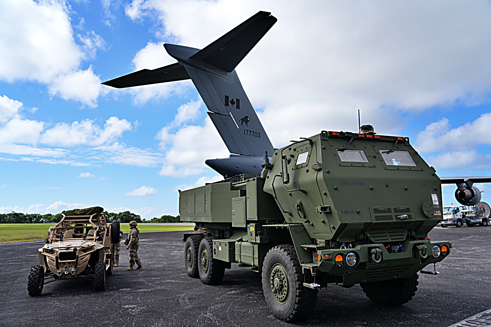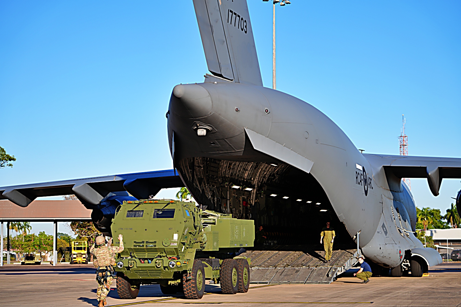 2025년 7월 22일 인도양의 한 영역에서 캐나다 왕립 공군 C-17이 제3 다영역 태스크포스(3MDTF Multi-Domain Task Force)가 주도한 고기동 포병 로켓 시스템(HIMARS)의 고기동 포병 로켓 시스템 신속 침투(HIRAIN High-Mobility Artillery Rocket System Rapid Infiltration)을 통한 일련의 합동 전투력을 투사하는 시연을 했다.