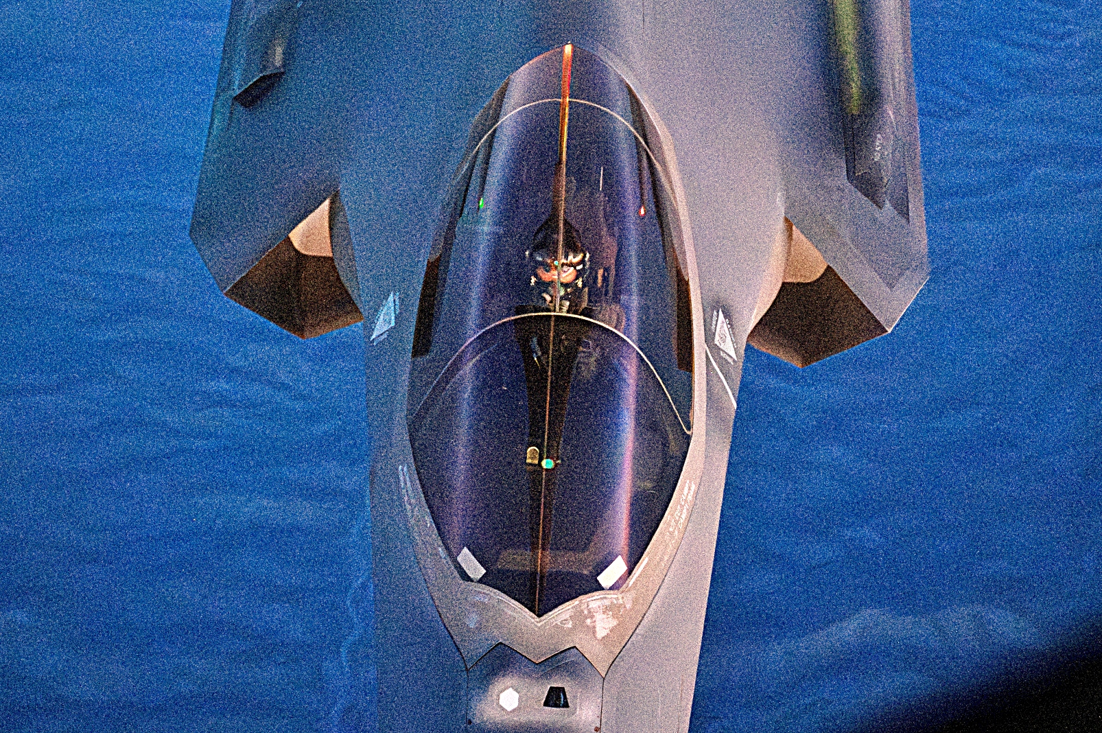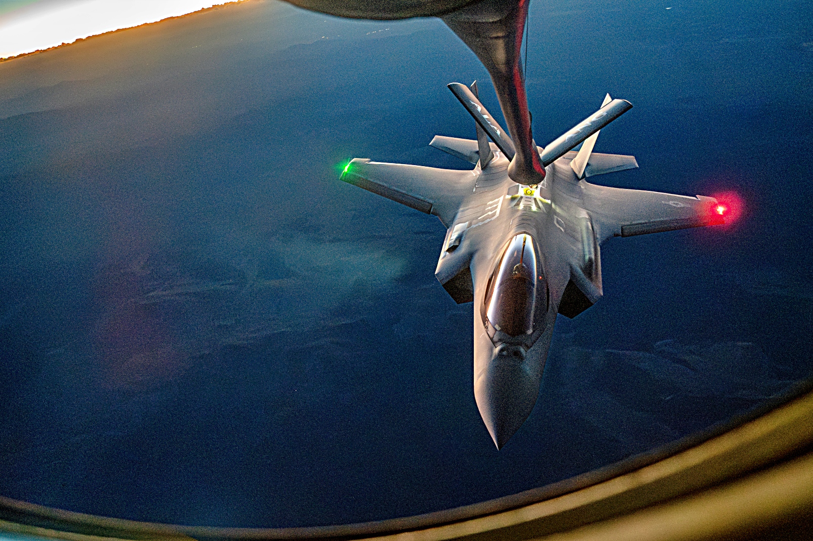 2025년 7월 24일 네바다 시험 및 훈련 지역 상공에서 진행된 ‘Red Flag-Nellis 25-3’ 훈련중 미국 공군 F-35A Lightning II 공격기가 앨라배마주 Sumpter Smith 합동 주방위공군 기지에 소속된 117 공중급유 비행단의 KC-135 Stratotanker로부터 야간 훈련중 공중급유 작전을 수행하고 있다. 야간 훈련은 적 항공 방어 체계 억제, 적 항공 방어 체계 무력화, 차단 전술 등을 어려운 환경에서 연습하는 데 필수적이며, 동시에 항공기 유지보수 및 기동성을 테스트하여 부대가 다양한 전투 시나리오에 대비할 수 있도록 한다.