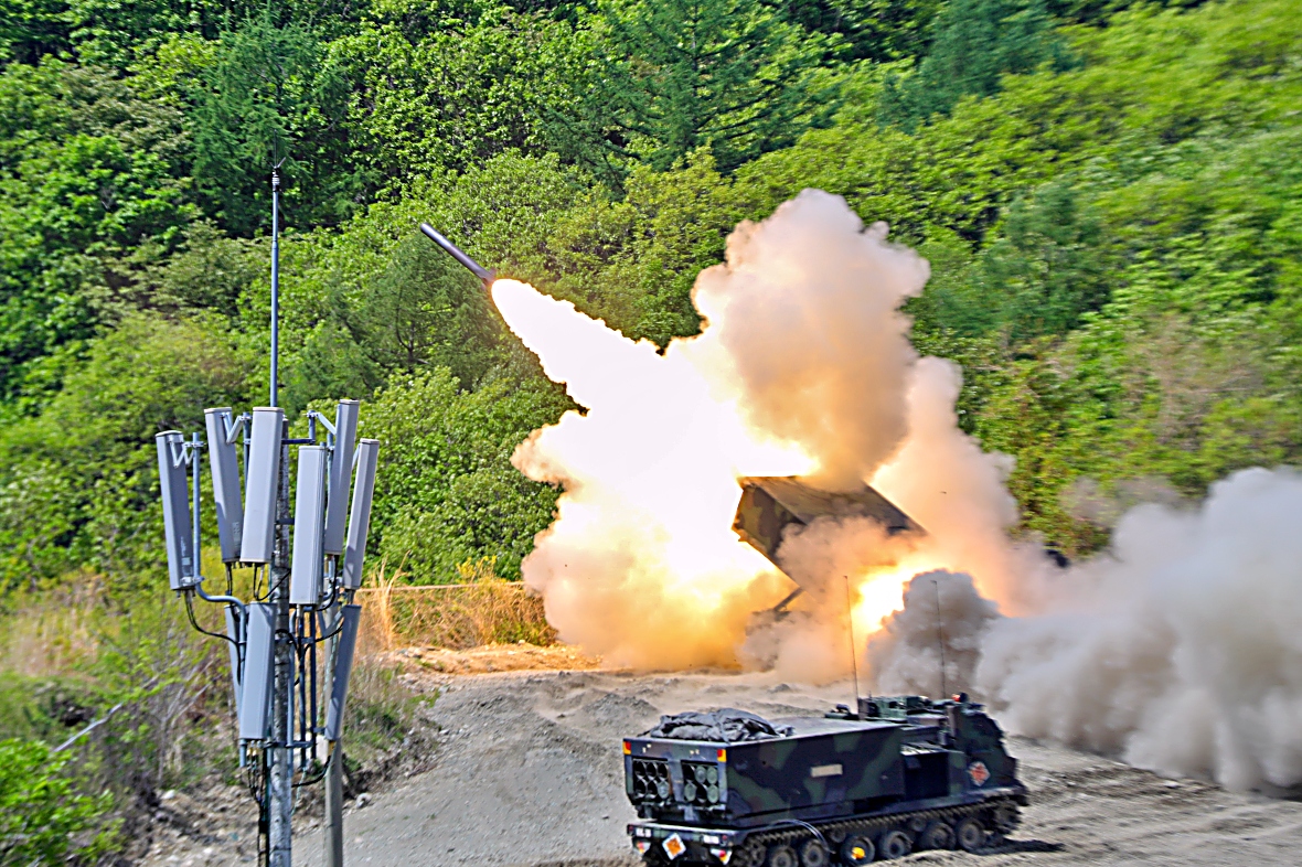 대한민국 육군 화력여단예하 제1100대대와 제1야전포병여단예하 제2000야전포병대대 소속 M270 다연장 로켓 시스템(MLRS)들이 2025년 4월 24일 한국 포천의 Rocket Valley 사격훈련장에서 미국 육군 제2보병사단/한미 연합사단 제210야전포병여단 제38야전포병연대 제1대대 소속 미 M270 다연장 로켓 시스템(MLRS)과 함께 진행한 연합 MLRS 실사격 훈련 중 로켓을 발사하는 모습을 미군이 4개여월만에 다시 공개했다. 왜???