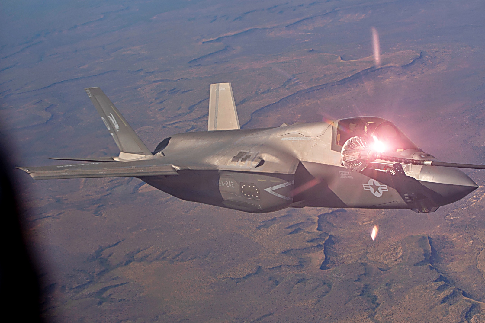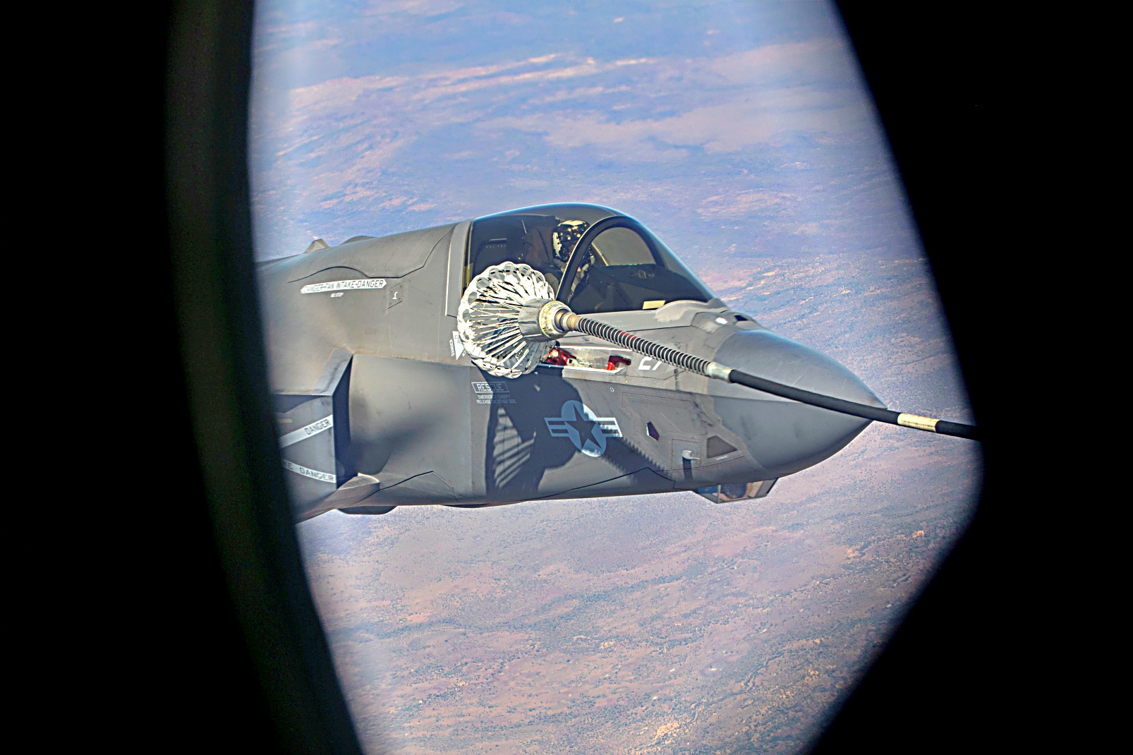 Operation Highmast 25를 수행하며 호주를 방문한 영국 해군 항모 HMS Prince of Wales함에 탑재중인 영국 왕립 공군의 617 비행대대 소속 F-35B Lightning II 공격기와 미 해군 강습상륙함 USS America (LHA-6)함에 탑재된 VMFA-242 해병전투공격비행대 소속 F-35B Lightning II 공격기가 2025년 7월 9일 호주 노던 테리토리(NT) 다윈 상공에서 Talisman Sabre 25 훈련을 앞두고 제1 해병 항공비행단 제1해병항공군 소속 VMGR-152 해병대 항공급유수송비행대의 KC-130J Super Hercules로부터 공중급유를 받으며 관숙 비행을 수행하고 있다.