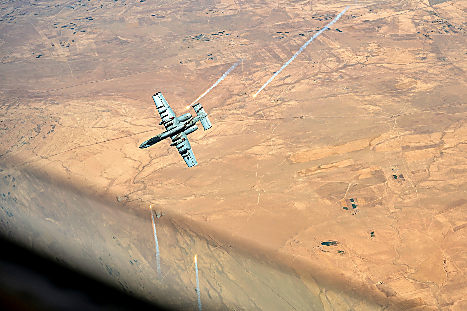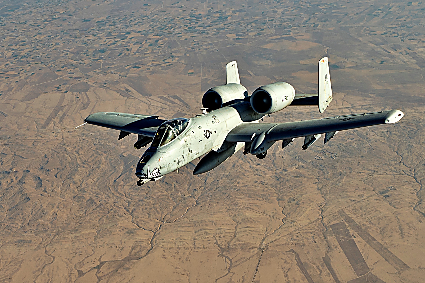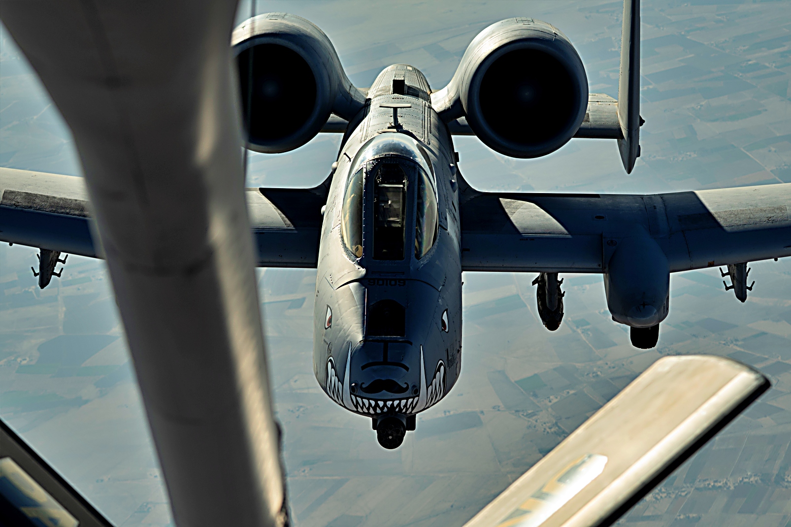 2025년 7월 23일, 미국 중앙사령부 작전 지역 상공에서 미국 공군 A-10 Thunderbolt II 공격기가 KC-135 Stratotanker와 공중 급유를 받으며 순찰 비행을 실시하고 있다. A-10은 전투 지역 근처에서 장시간 체공할 수 있으며, 낮은 고도와 시야 조건에서도 작전을 수행할 수 있다.