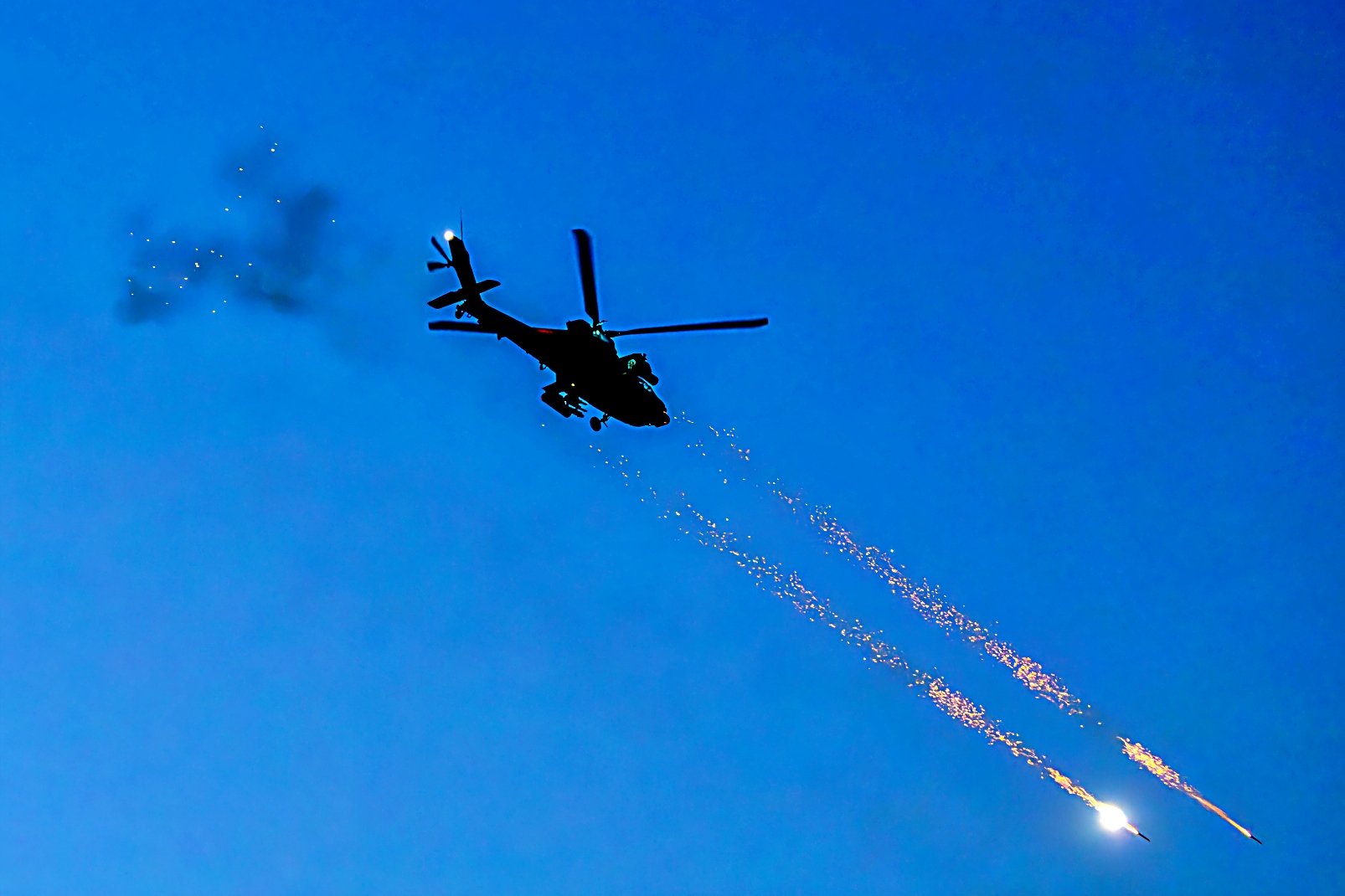 이라크에 배치되어 Operation Inherent Resolve를 지원하는 에스토니아 육군 Estcoy-22이 8월 4일 실사격 훈련 중 미 육군 제101 공정사단 공중강습 제101전투항공여단 Task Force Nighthawk 소속 AH-64E Apache 공격 헬리콥터의 기관포와 로켓 사격을 지휘했다.