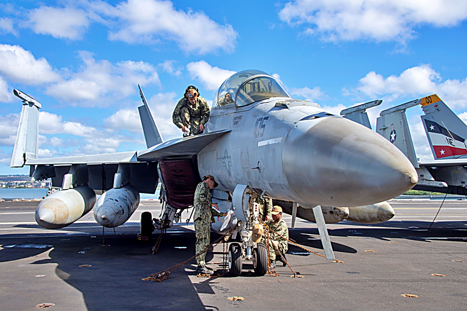 Carl Vinson 항모는 제1 항공모함 타격군단의 기함으로, 하와이 진주만에서 예정된 항구 방문을 수행중이다.