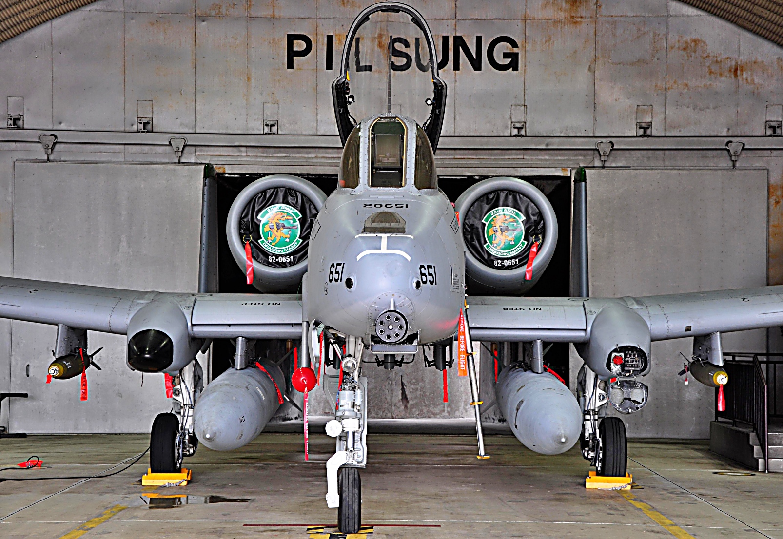주한 미공군 오산 공군기지에 주둔하는 제51 탄약 중대(51st Munitions Squadron)와 제25 항공기 유지보수 대대(25th Aircraft Maintenance Unit)의 공군 병사들이 2011년 5월 3일부터 4일사이 A-10C Thunderbolt II 공격기에 폭탄을 장착하는 훈련을 공동으로 수행했다. 훈련은 51 탄약 중대원들이 기술 연마와 훈련을 위해 Mark-82 500파운드 자유낙하용 다목적 폭탄 12발을 조립하고 Draggins Lair로 운반했으며, 25 AMU 소속 공군 병사들이 모든 탄약을 A-10에 장착했다.