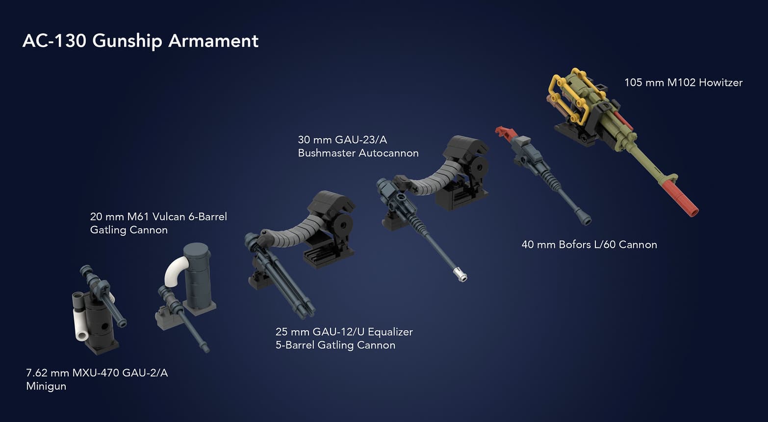 퇴역한 AC-130W Stinger II과 현역인 AC-130J Ghostrider 주무장