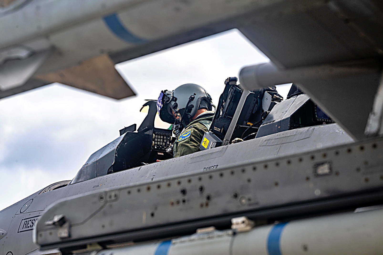 미국 공군 제48전투비행단과 제31전투비행단에 소속된 F-35 Lighting II 공격기와 F-16 Fighting Falcon 전투기 편대가 2025년 8월 20일 이탈리아 Aviano 공군기지에서 열린 'Combined Strike 25' 훈련의 일환으로 이륙을 준비하고 있다.