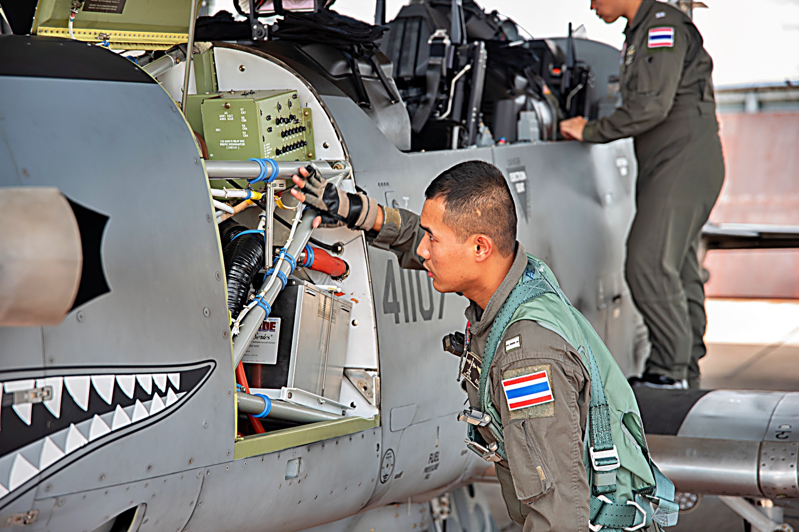 태국 왕실 공군 소위 RATANACHAT SUTAT “SUNRISE"와 미국 공군 오클라호마 주방위군 제137 특수작전 비행대대 무기 시스템 담당관 Matt Powers 소령은 2025년 8월 19일 태국 Korat 공군 기지에서 진행된 ‘Enduring Partners’ 행사 중 AT-6 경공격정찰기에 탑승하여 우정 비행을 실시했다. 이 비행은 미국 WSO가 RTAF와 함께 AT-6 항공기에서 비행한 첫 번째 사례이다.