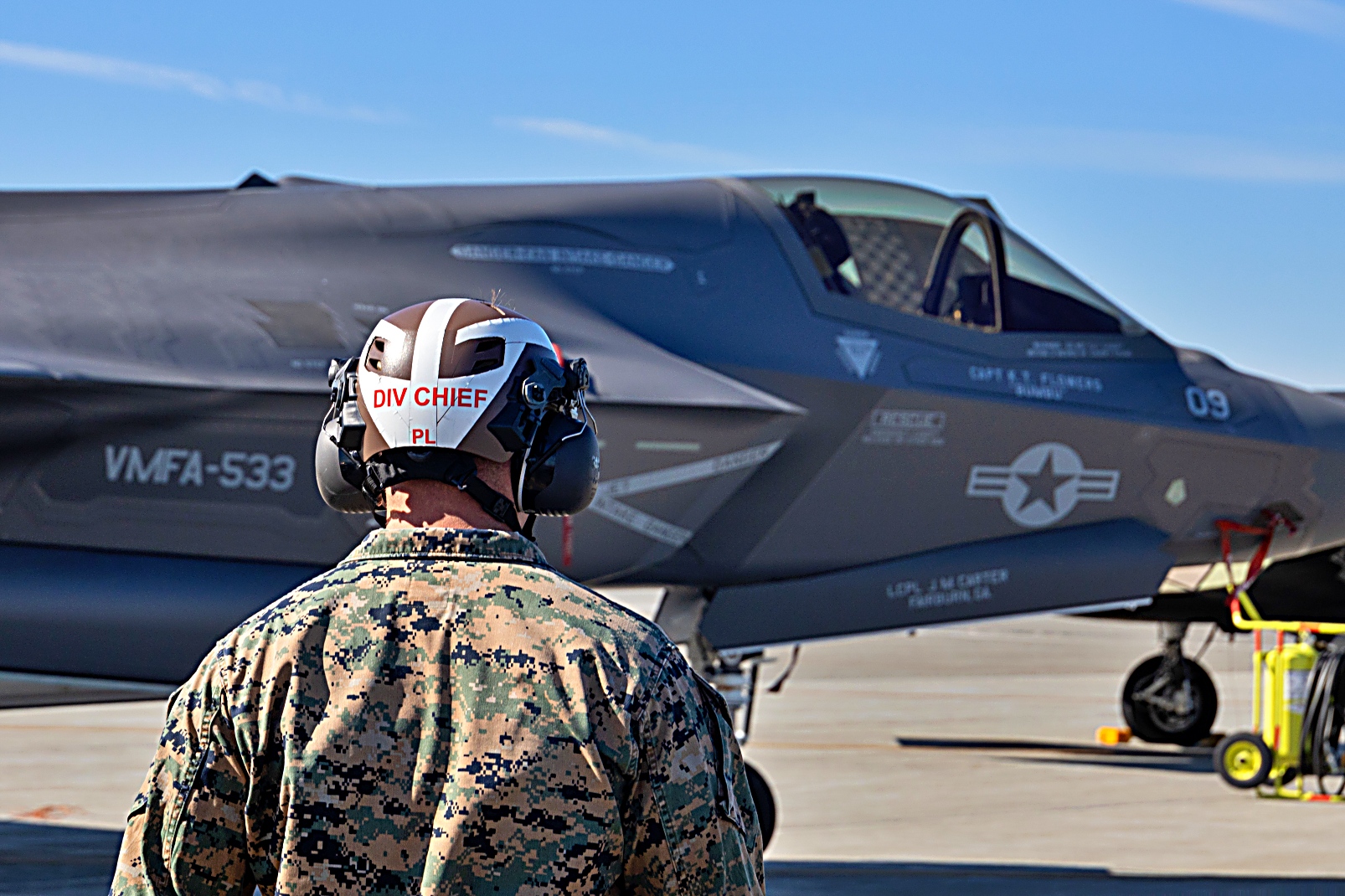 미국 해병대 제2해병항공단 제31해병항공군 예하 VMFA-533 소속 F-35 B Lightning II 공격가 2025년 8월 11일 알래스카 Elmendorf-Richardson 합동 기지에서 ARCTIC EDGE 25(AE25) 훈련 중 이륙하고 있다. 이 특별한 북극 지역 훈련은 조종사와 지원 인력에게 실제 환경에서의 귀중한 경험을 제공하여 해당 지역에서의 지속적인 작전 준비 태세를 확보한다. AE25는 북미 항공우주 방어사령부(NORAD)와 미국 북부 사령부(USNORTHCOM)가 주도하는 국토 방어 훈련으로, 북극 지역에서의 준비 태세 강화, 능력 시연, 연합 및 동맹군 간의 상호 운용성 향상을 목표로 한다.