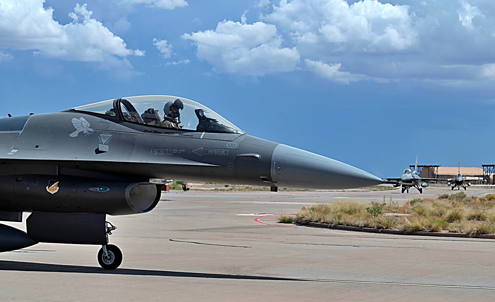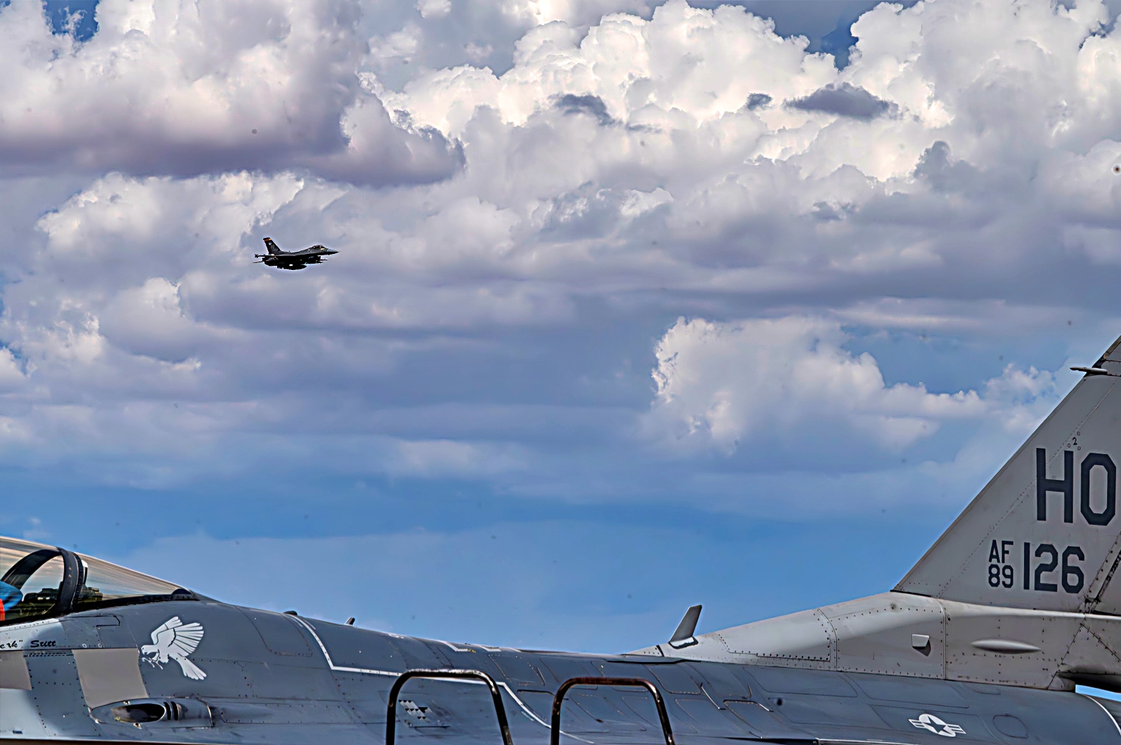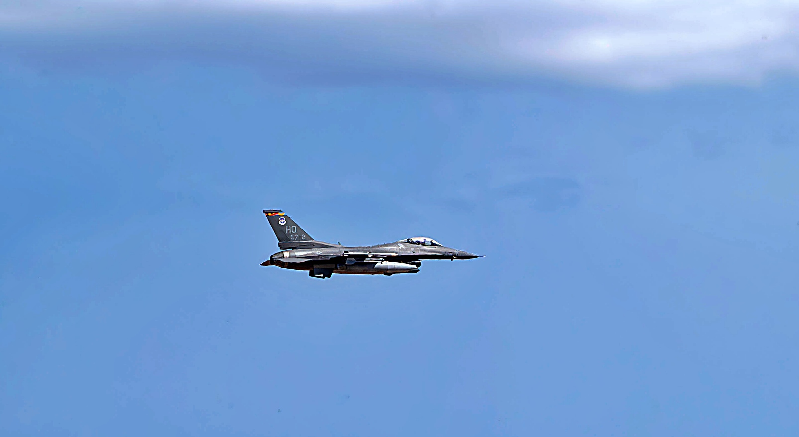미국 공군 제54 전투비행군 예하 제314 전투비행대대에 소속된 F-16 전투기가 2025년 8월 18일 뉴멕시코주 Holloman 공군기지에서 비행 훈련을 진행했다.
