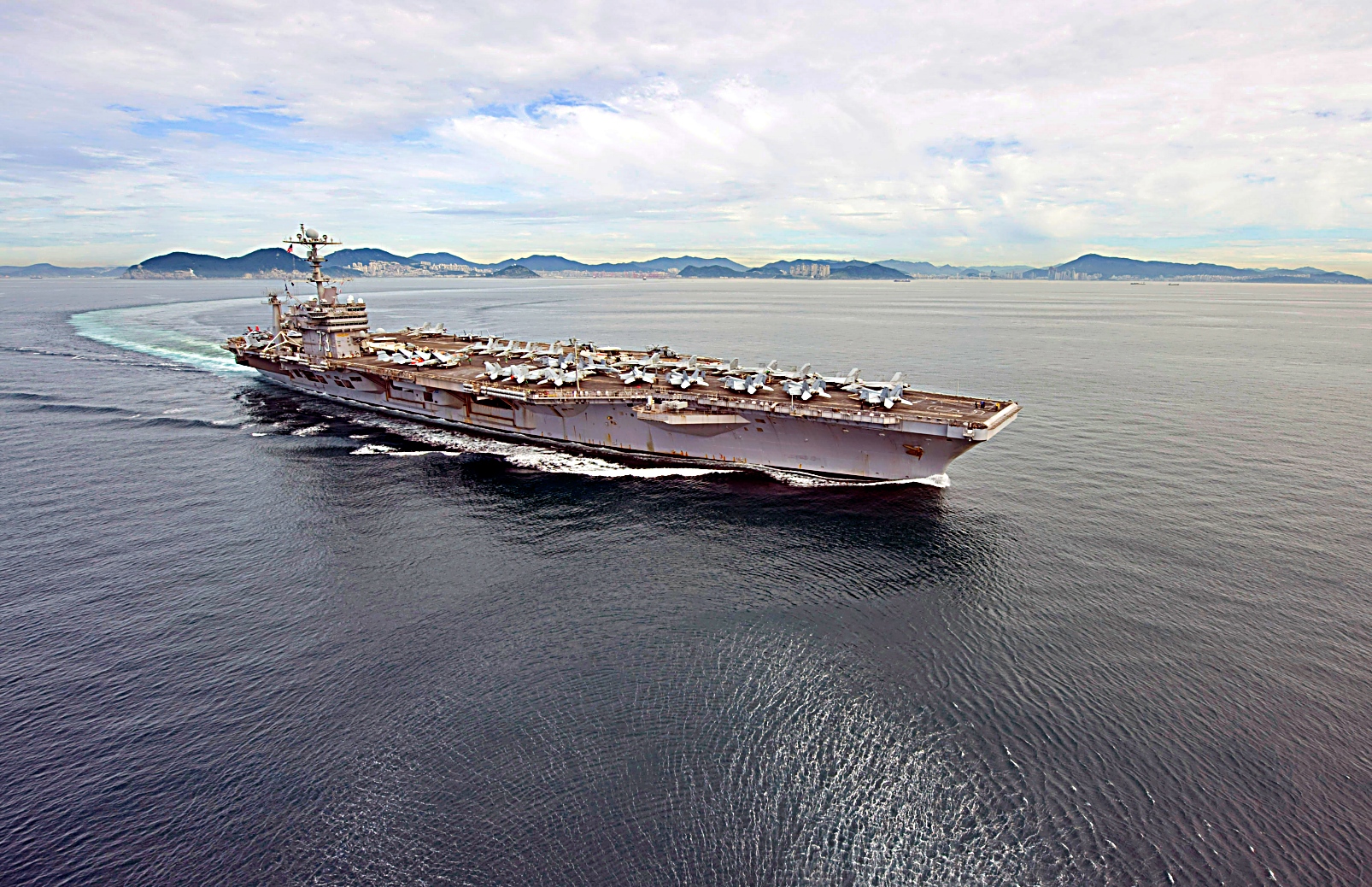 2010년 7월 25일 ‘Invincible Spirit’ 훈련을 위해 부산항을 출항하는 George Washington 항모