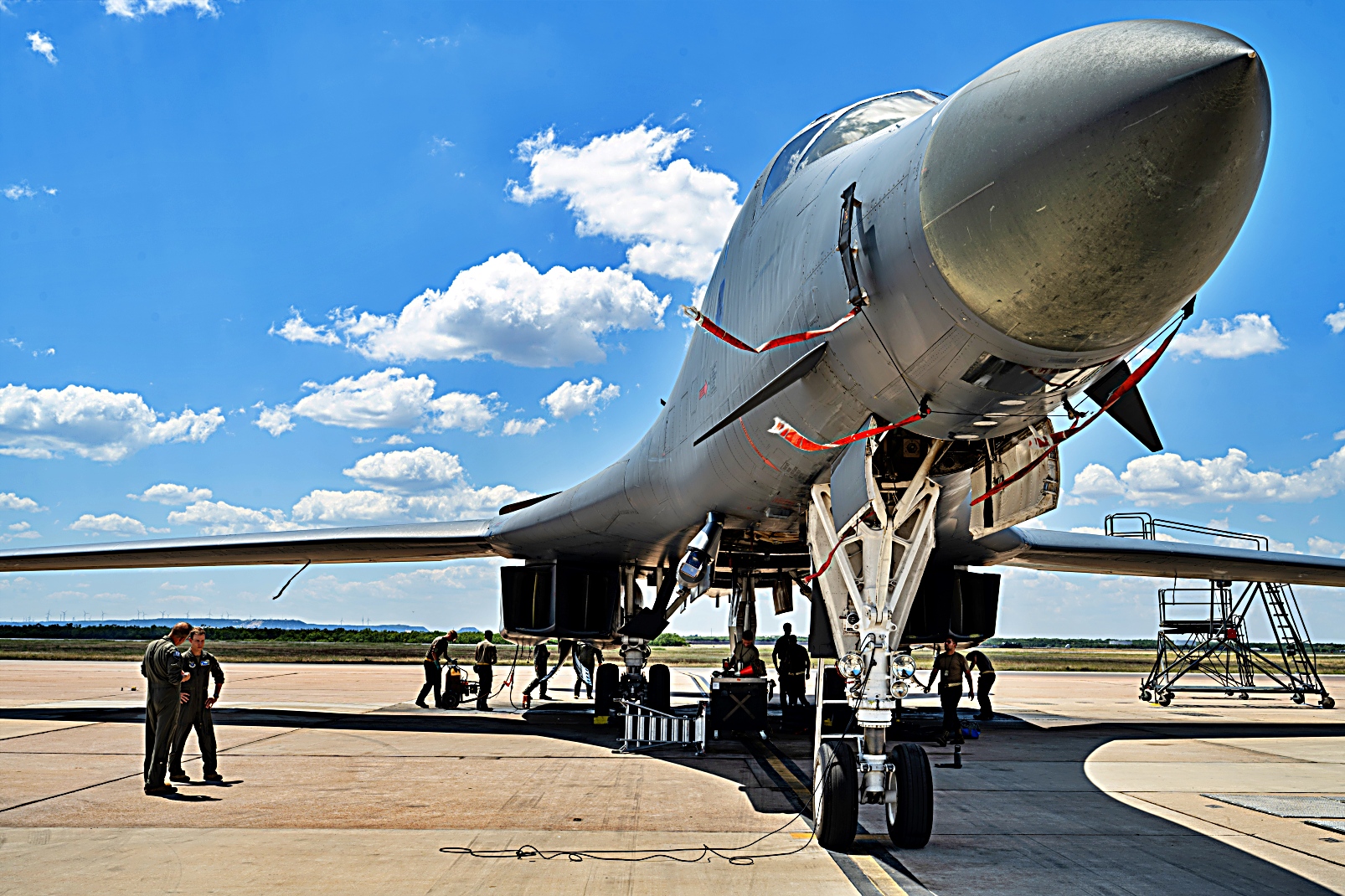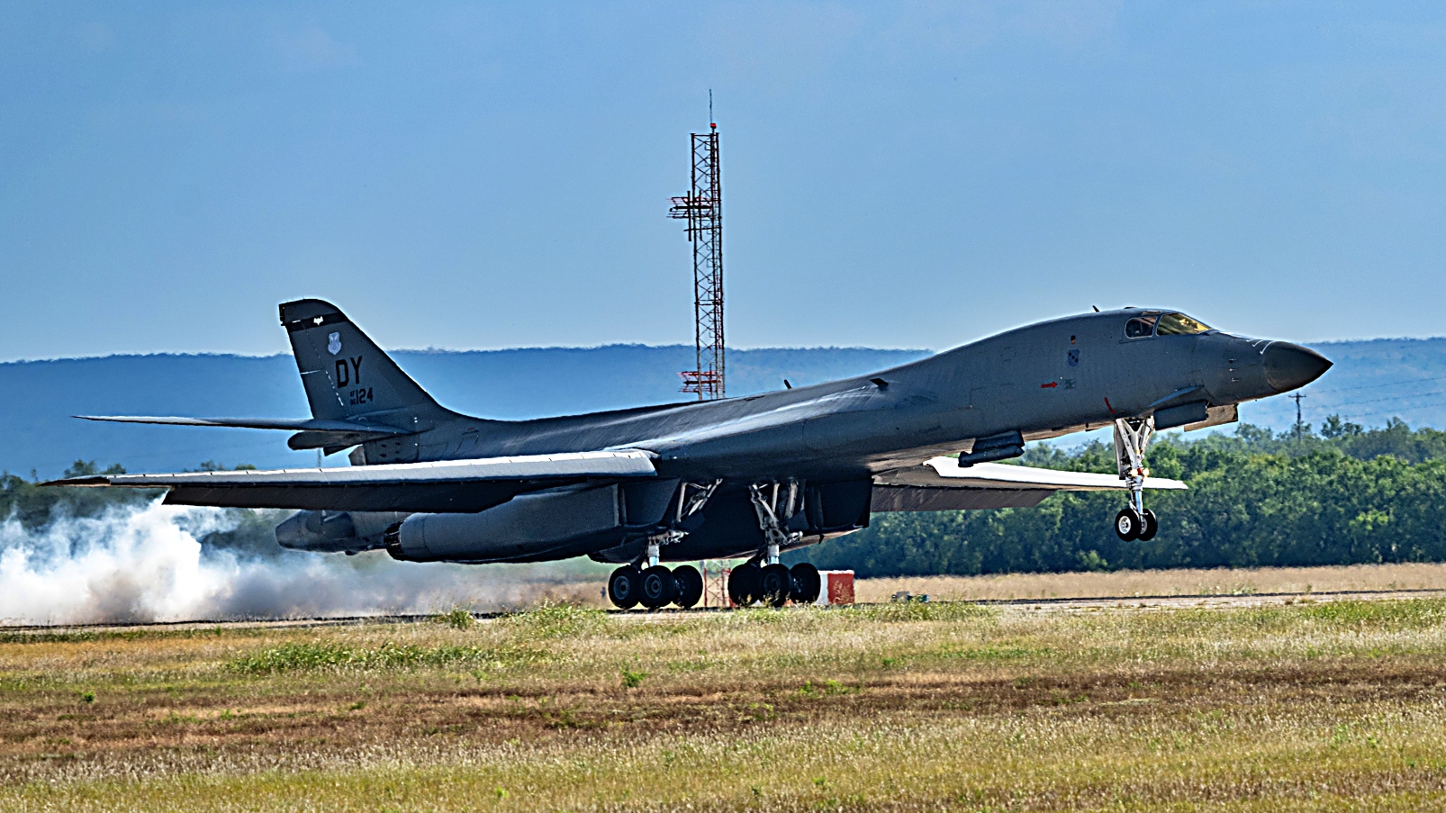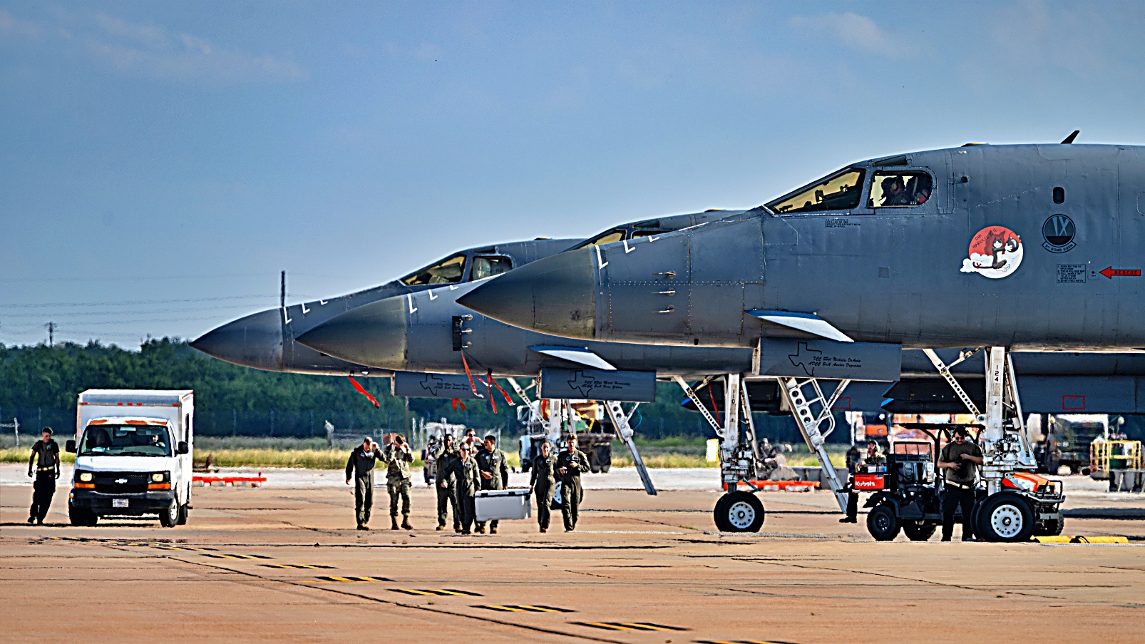노르웨이에 전개했던 미국 공군 제345원정폭격비행대 소속된 B-1B Lancer 폭격기가 2025년 8월 22일 텍사스주 Dyess 공군기지에 착륙했다.