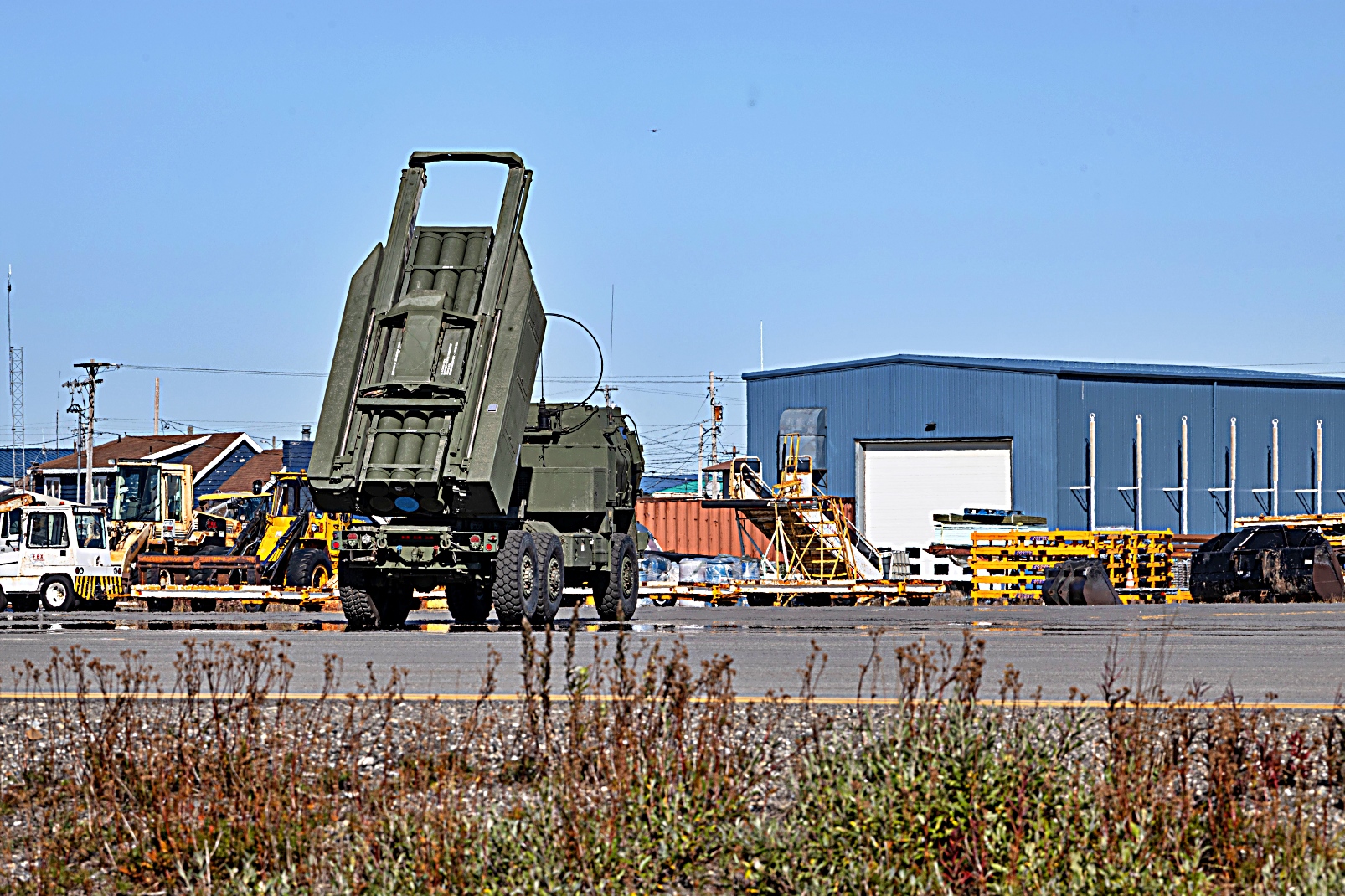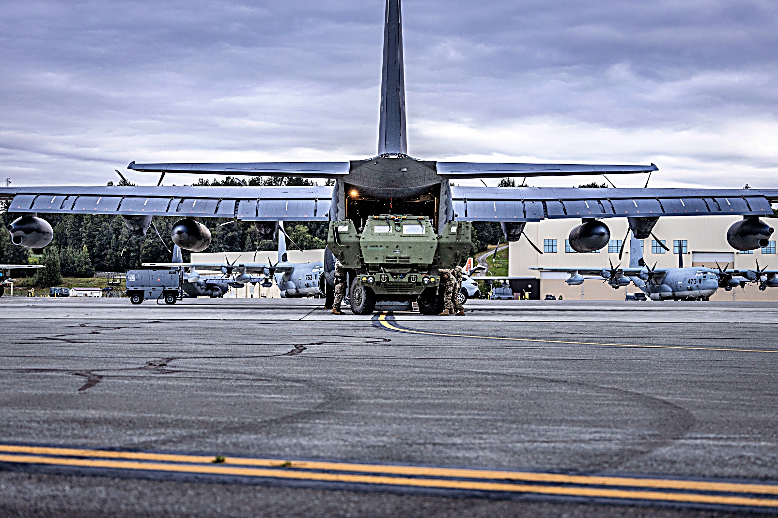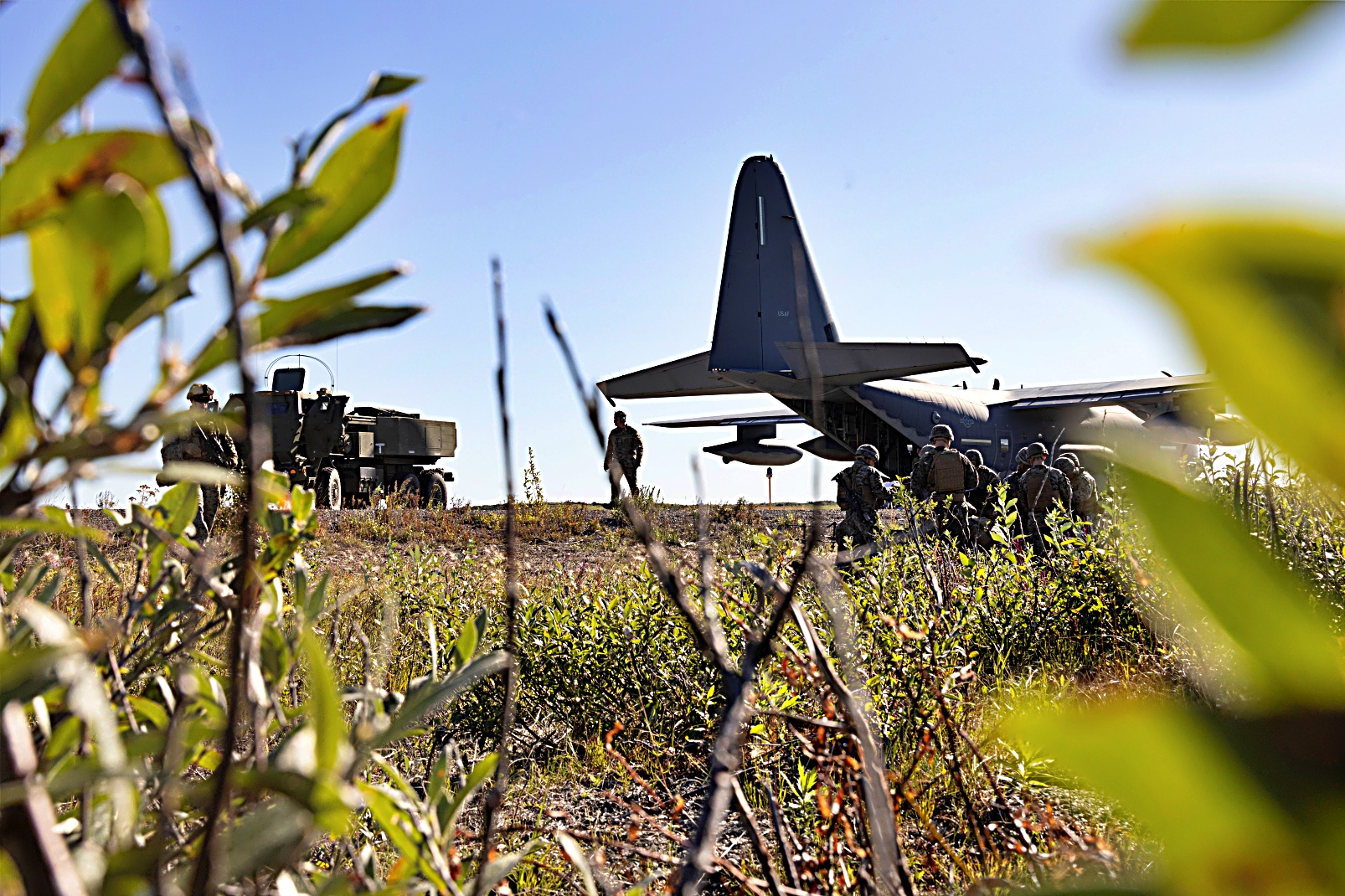 2025년 8월 19일, 알래스카 Kotzebue에에서 진행된 ‘ ARCTIC EDGE 2025 (AE25) 훈련 중, 미 공군 제27특전비행단 소속 공군 병사들이 MC-130J Commando II 수송기에서 고기동성 포병 로켓 시스템(HIMARS)을 하역하고 있다. 특화된 북극 훈련은 전투원과 지원 요원들이 어떤 환경에서도 임무를 수행할 수 있도록 소중한 교훈을 제공한다. AE25는 북극 지역에서의 준비 태세 향상, 능력 시연, 연합군 및 동맹군 상호운용성 강화를 목표로 북미항공우주방위사령부(NORAD)와 미 북부사령부가 주도하는 국토 방어 훈련이다.