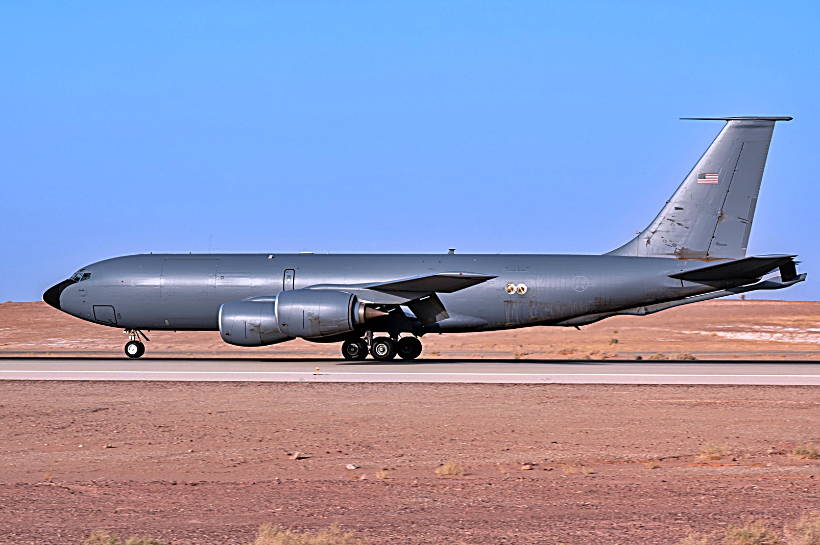 2025년 7월 21일 960원정 공중통제비행대대 소속 E-3 Sentry와 KC-130R 공중급유기가 이륙을 준비하고 있다. E-3 조기경보기는 공중경보통제시스템(AWACS)을 탑재하여 정찰, 공수, 공중지원에 필요한 정보를 제공함으로써 지휘관이 공중전투 공간 통제권을 유지할 수 있도록 지원한다. KC-135 급유수송기는 공중 급유를 통해 전투 작전 중 비행 시간을 연장함으로써 미국의 전력 확장 능력을 지원하며, 해당 지역의 방어 및 억제 목표 달성에 기여한다.