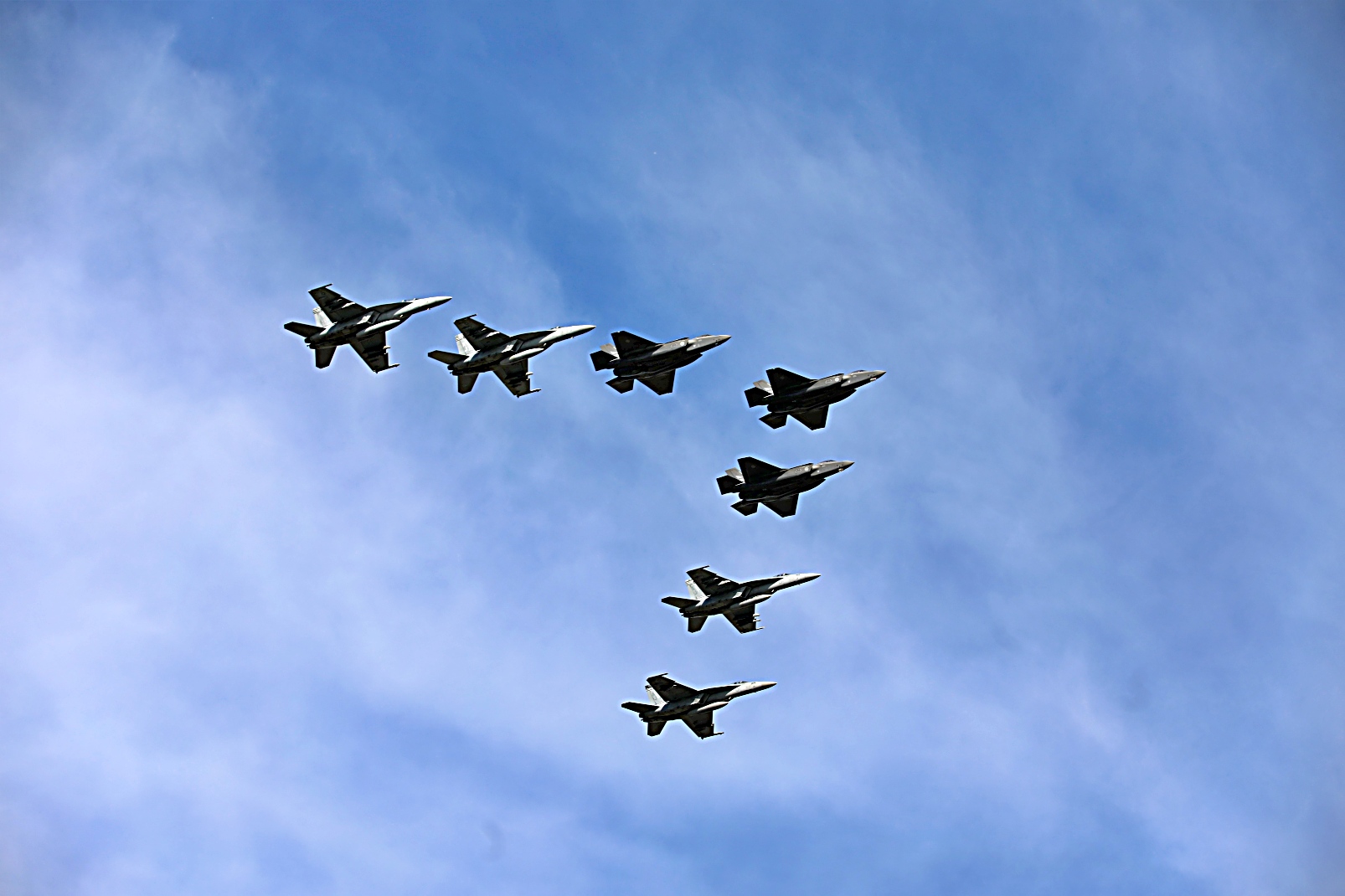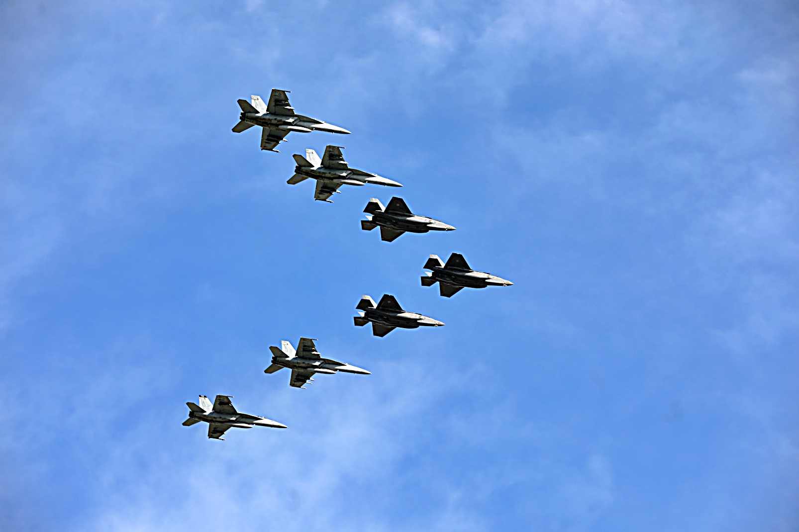 2025년 8월 27일, High North 작전 중 세계 최대 항공모함 USS Gerald R. Ford (CVN 78)에 배치된 제8항모항공단 F/A-18 Super Hornet 전폭기들과 노르웨이 왕립 공군 F-35A Lightning II 공격기들로 구성된 편대가 노르웨이 Ørland 공군기지를 비행하고 있다. Gerald R. Ford함은 동급 최초의 항공모함이자 Carrier Strike Group Twelve의 기함으로, 미 해군 유럽-아프리카 사령부(USNAVAEUA)의 전투 효율성, 살상력 및 준비 태세를 지원하고 해당 지역 내 미국, 동맹국 및 협력국의 이익을 방어하기 위해 미 해군 제6함대 작전 지역에 예정된 배치를 수행 중이다.
