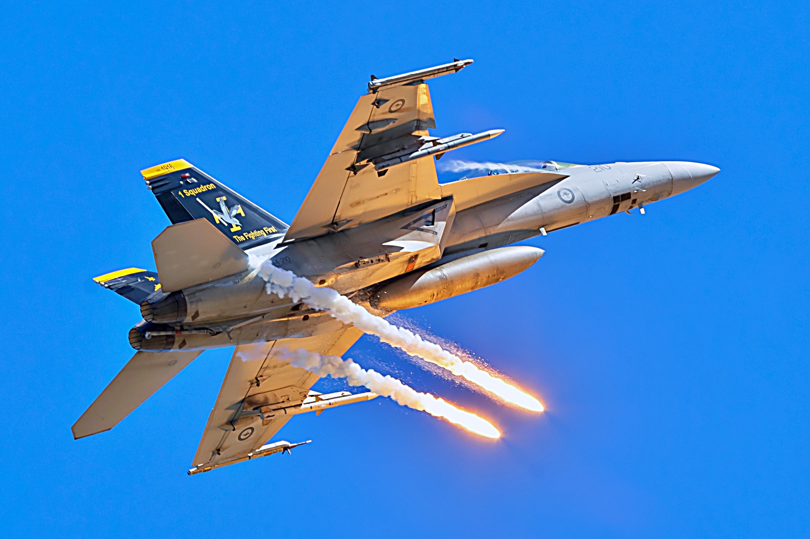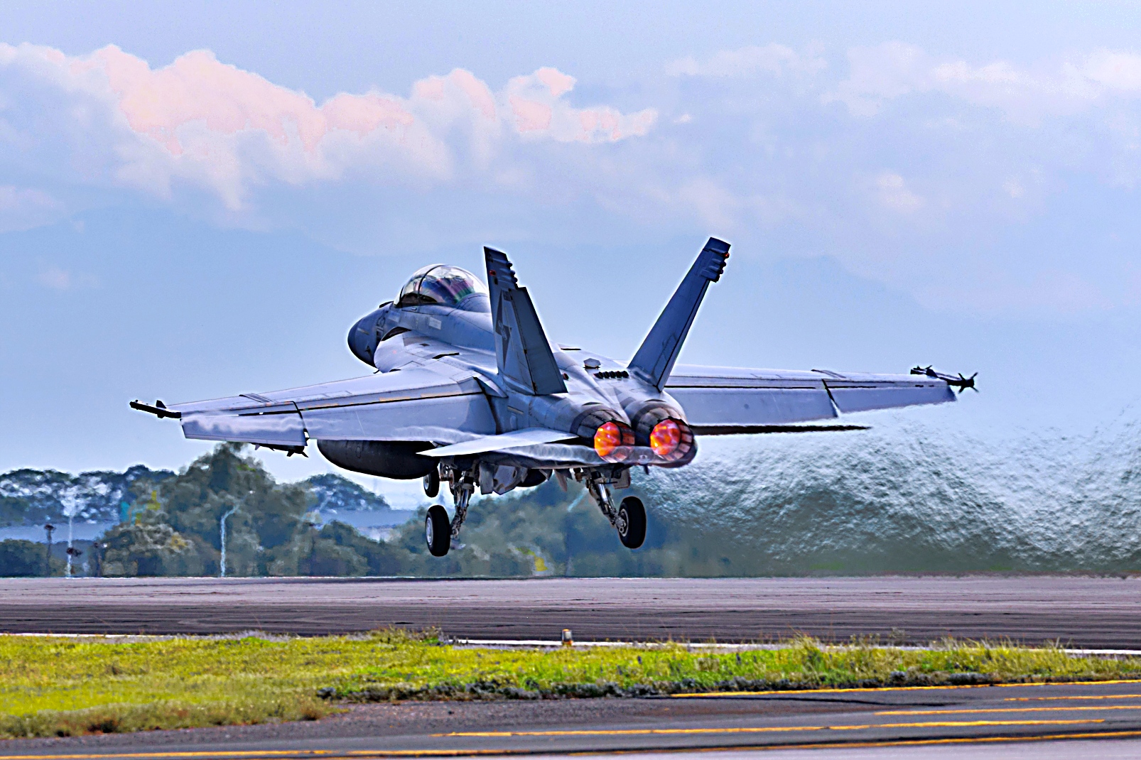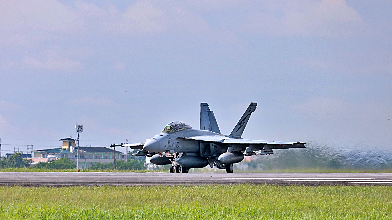 필리핀 클락 공군기지에서 진행 중인 ‘ALON 25’ 훈련 중 호주 왕립 공군 F/A-18F Super Hornet이 이륙하고 있다.