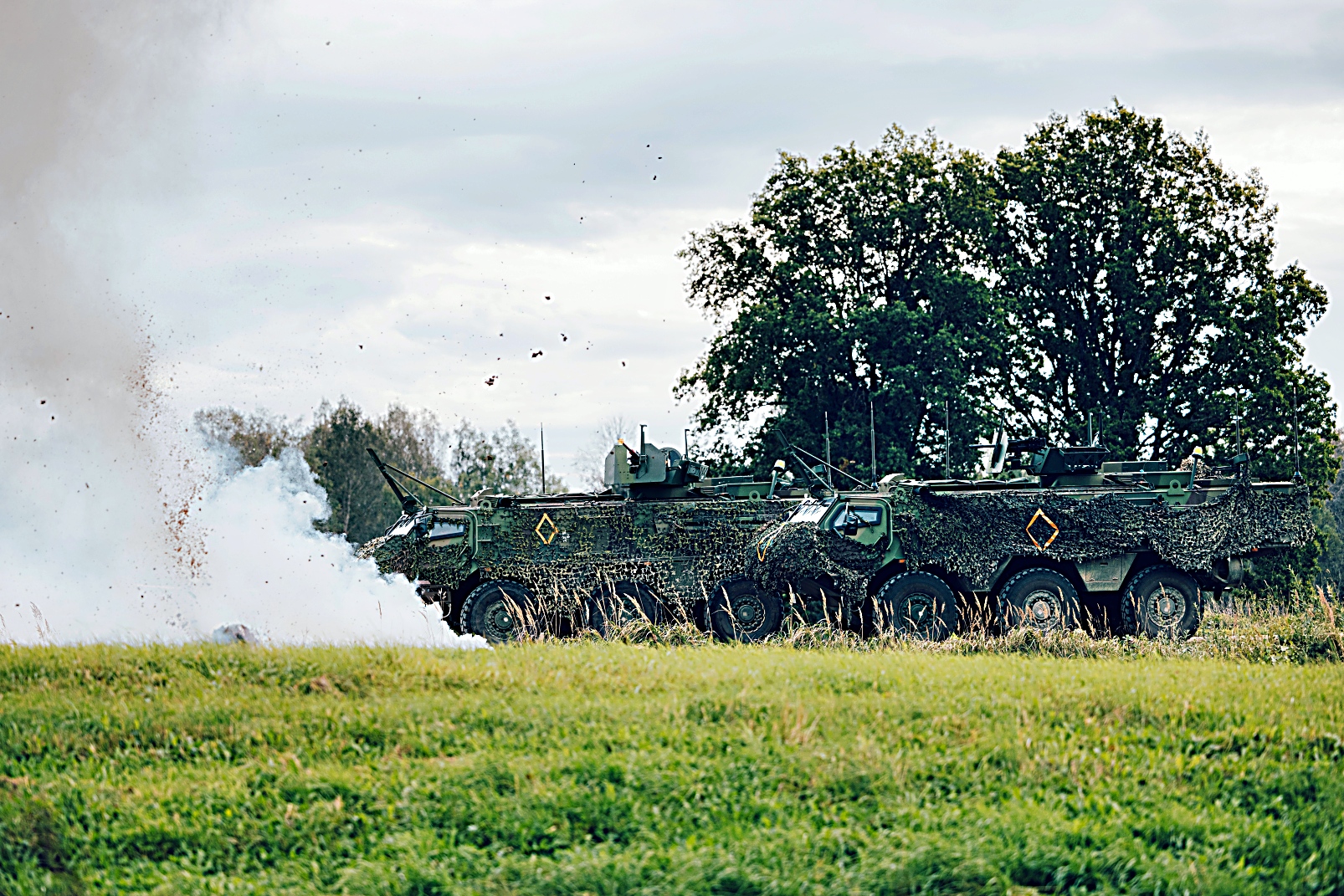 라트비아군의 군사 훈련 Namejs Shield 23를 앞두고 8월 3일 라트비아육군 Patria 6×6 장갑차들이 훈련지역인 Latgale 로 이동하고 있다. 장갑차들의 이동 목적은 올 가을에 열리는 종합 국가 방위 훈련 "N