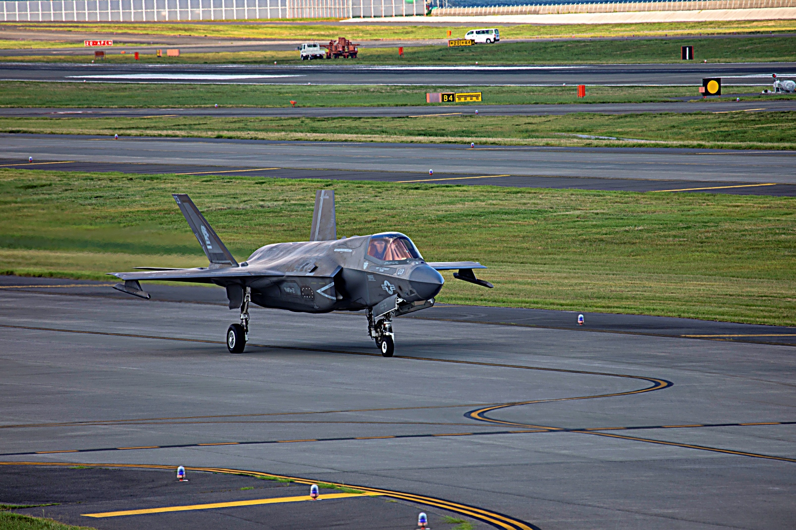 2025년 9월 18일, 일본 Iwakuni 해병대 항공기지에서 미 해군 제5항모항공단 소속 VFA-147공격전투비행대대의 F-35C Lightning II 공격기와 VFA-195 공격전투비행대 소속 F/A-18E Super Hornet 전폭기가 육상기지에서 모의 항공모함 착륙 훈련을 실시하고 있다. 또한 미 해병대 제1항공단 제12항공군 VMFA-121 전투공격대대 소속 F-35B Lightning II 공격기 제1 해병 항공단 제12 해병 항공군 VMGR-152 공중급유수송비행대대 소속 미 해병대 KC-130J Hercules 급유수송기가 비행 작전을 수행하고 있다.