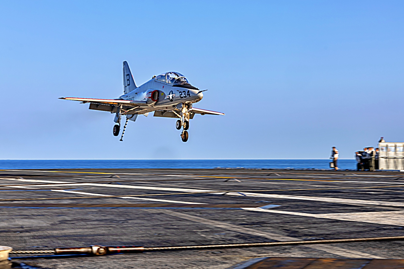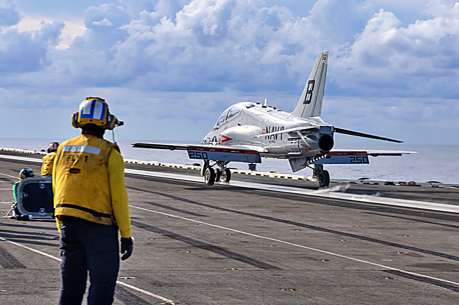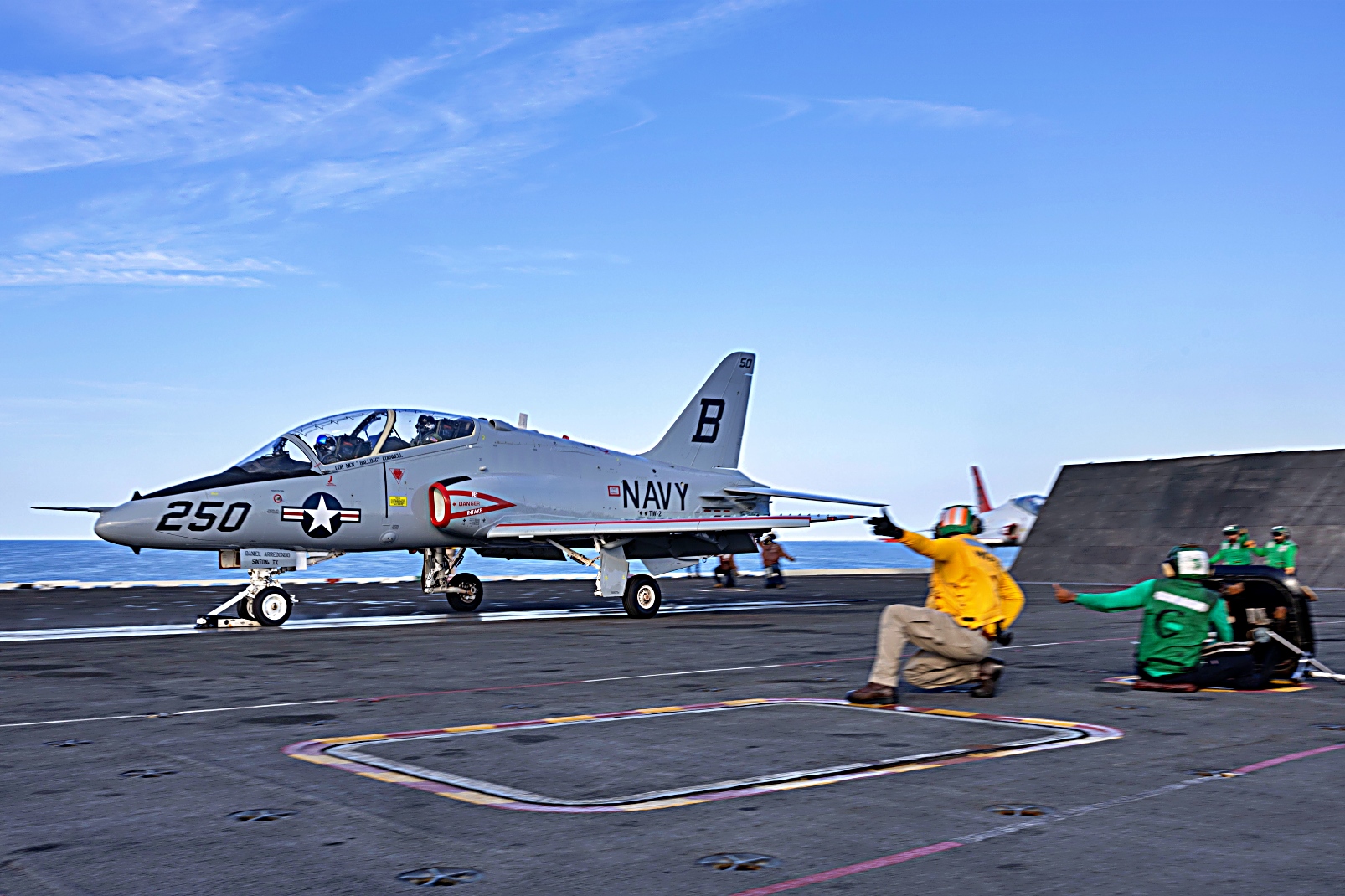 2025년 9월 18일 TV-2 훈련항공단 소속 T-45C Goshawk가 대사양을 항진중인 미 해군 Nimitz급 항공모함 USS Harry S. Truman (CVN 75)에서 이착함 훈련을 수행하고 있다.