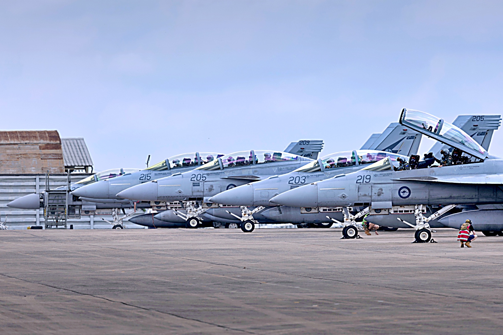 태국 Korat 왕립 태국 공군 기지에서 Thai Boomerang 25 훈련 중 출격 준비 중인 호주 왕립 공군 제1비행대대 조종사들.Thai Boomerang 25 훈련은 태국 왕립 공군과 호주 왕립 공군 간의 양자 상호작용 훈련으로 상호운용성을 강화하고 모든 계층의 항공 요원들 간에 더 깊은 이해, 우정 및 유대감을 구축한다. Thai Boomerang 25 훈련은 2025년 9월 8일부터 19일까지 태국 Korat 왕립 태국 공군 기지에서 진행된다. 호주 공군은 제1비행대대와 제4비행대대 F/A-18F Super Hornet 전투기 및 지원 인원을 파견했다.