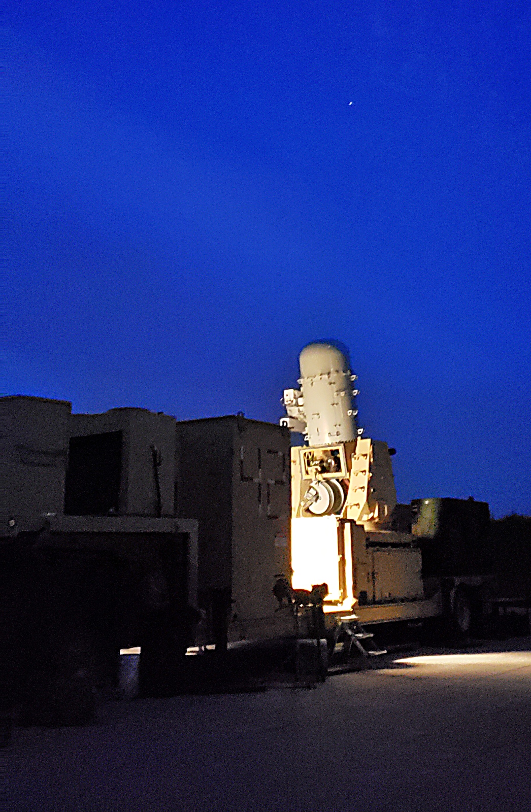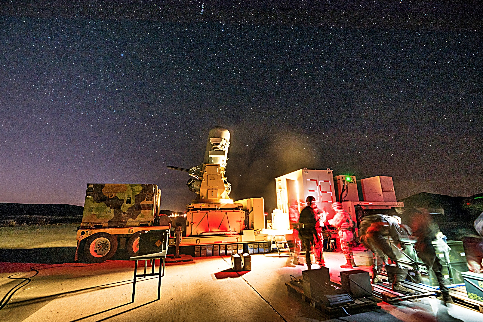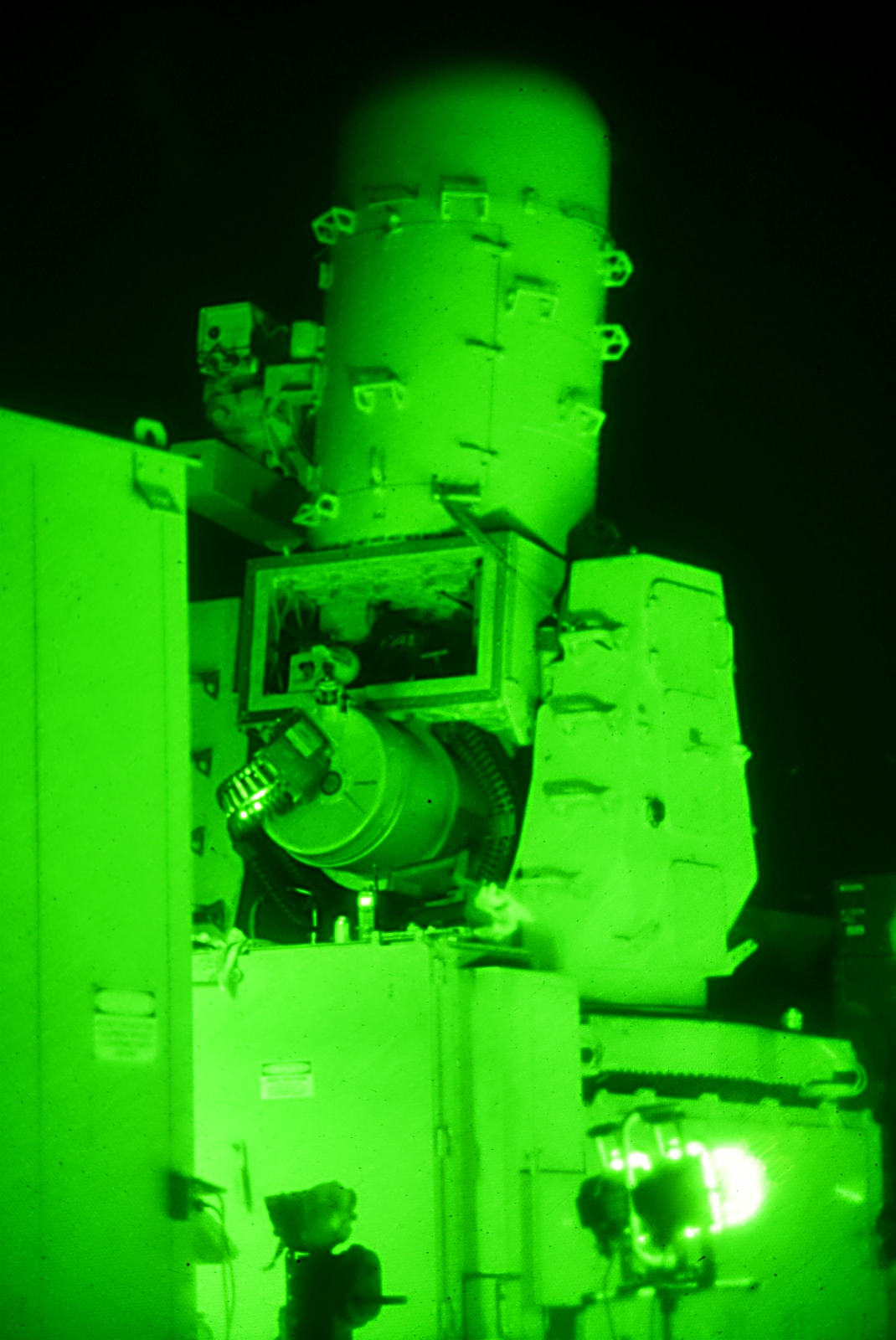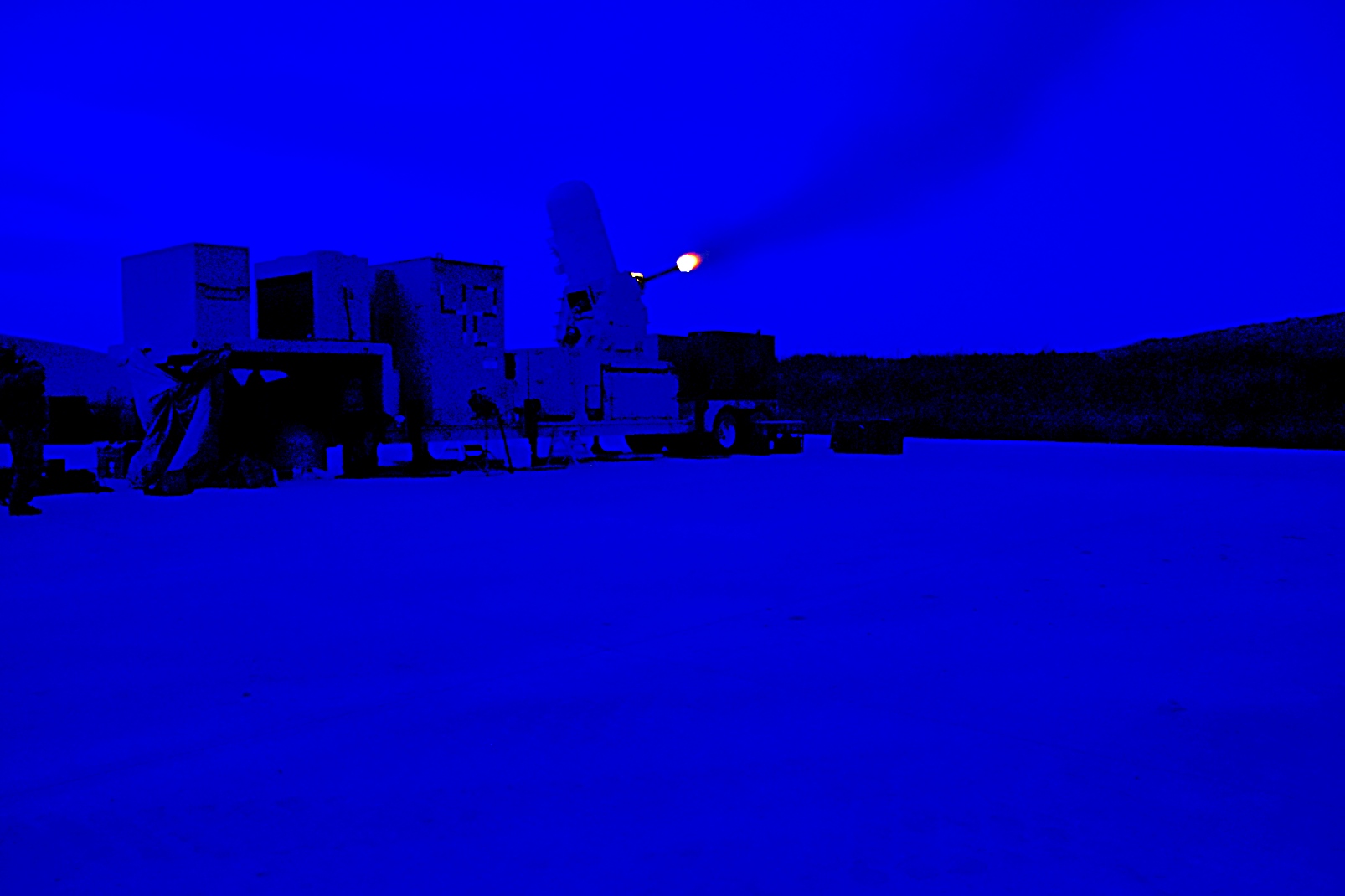 2001년 1월 24일 오클라호마주 Fort Sill에서 진행된 야간 로켓·포병·박격포 대응 시스템 C-RAM 시험 중, 표적을 향해 회전하며 발사 준비를 하고 있다. C-RAM 시험은 2020년 1월 초 시작되어 주간 및 야간 시험을 포함해 진행됐다.