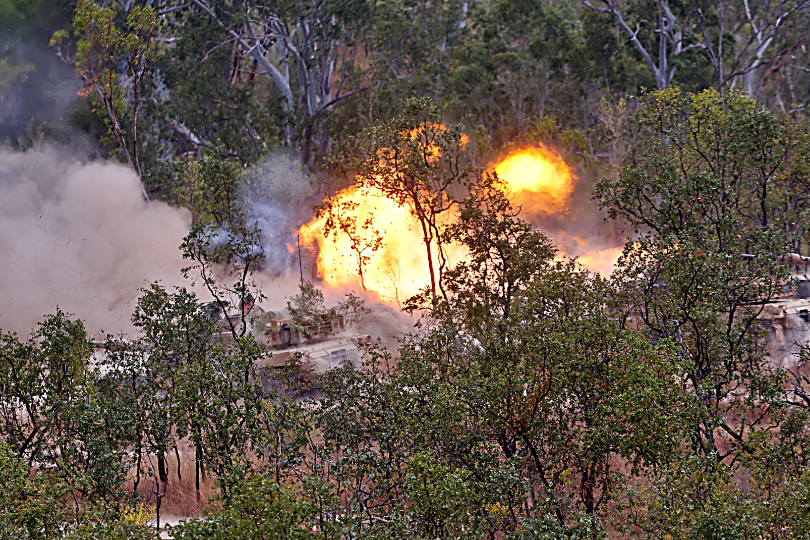 2025년 9월 11일부터 16일 퀸즐랜드주 Townsville 야전훈련장에서 진행된 중장갑 능력 체계 실사격 훈련(HACS LFX : Heavy Armoured Capability Systems Live Fire Exercise) 중, 제2기병연대 소속 M1A2 Abrams 전차들이 표적을 사격하고 있다.또한 M1110 Joint Assault Bridge 강습 교량 전차와 M1150 Assault Breacher Vehicle 강습돌격전차의 기동 지원이 펼쳐졌다.