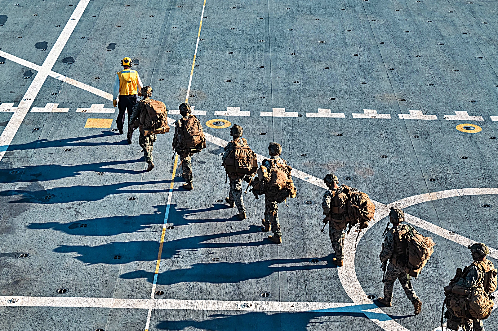 2025년 9월 26일 세계에서 가장 오래 지속된 다국적 해상 훈련인 유니타스(UNITAS) 2025의 일환으로, 미 해병대 및 동맹국·협력국 군인들이 San Antonio급 상륙수송함 USS Arlington (LPD 24)에서 LCAC 공기부양 상륙정과 MV-22B 수송기를 이용하여 적진으로 향하는 모의 상륙 작전을 수행 중이다.