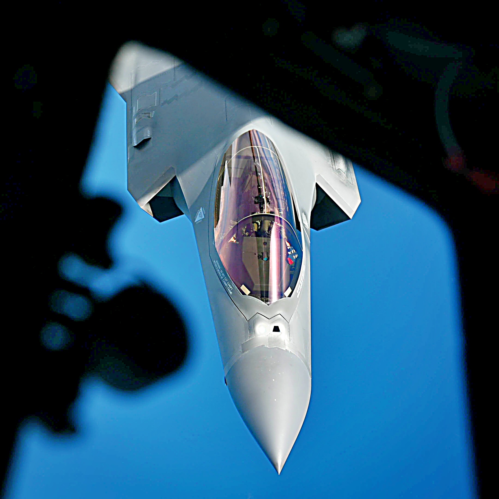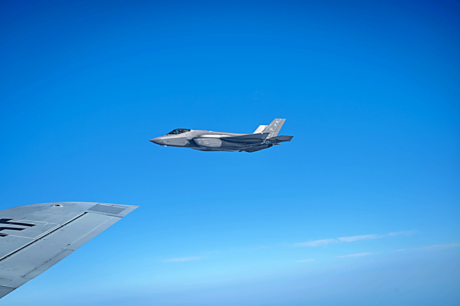 2025년 9월 26일, 일본 Misawa 공군기지 인근 태평양 상공에서 ‘Bushido Guardian 2025’ 훈련 준비를 위한 공중급유 임무 중, 미 공군 제4전투비행대대 소속 F-35A Lightning II 공격기가 미 공군 제909공중급유비행대대 소속 KC-135 Stratotanker와 함께 비행하고 있다. 이번 작전은 미일 양국이 힘을 투사하고 전투 작전을 지속하며 공동의 지역적 이익을 방어할 수 있는 능력을 보여줬다.