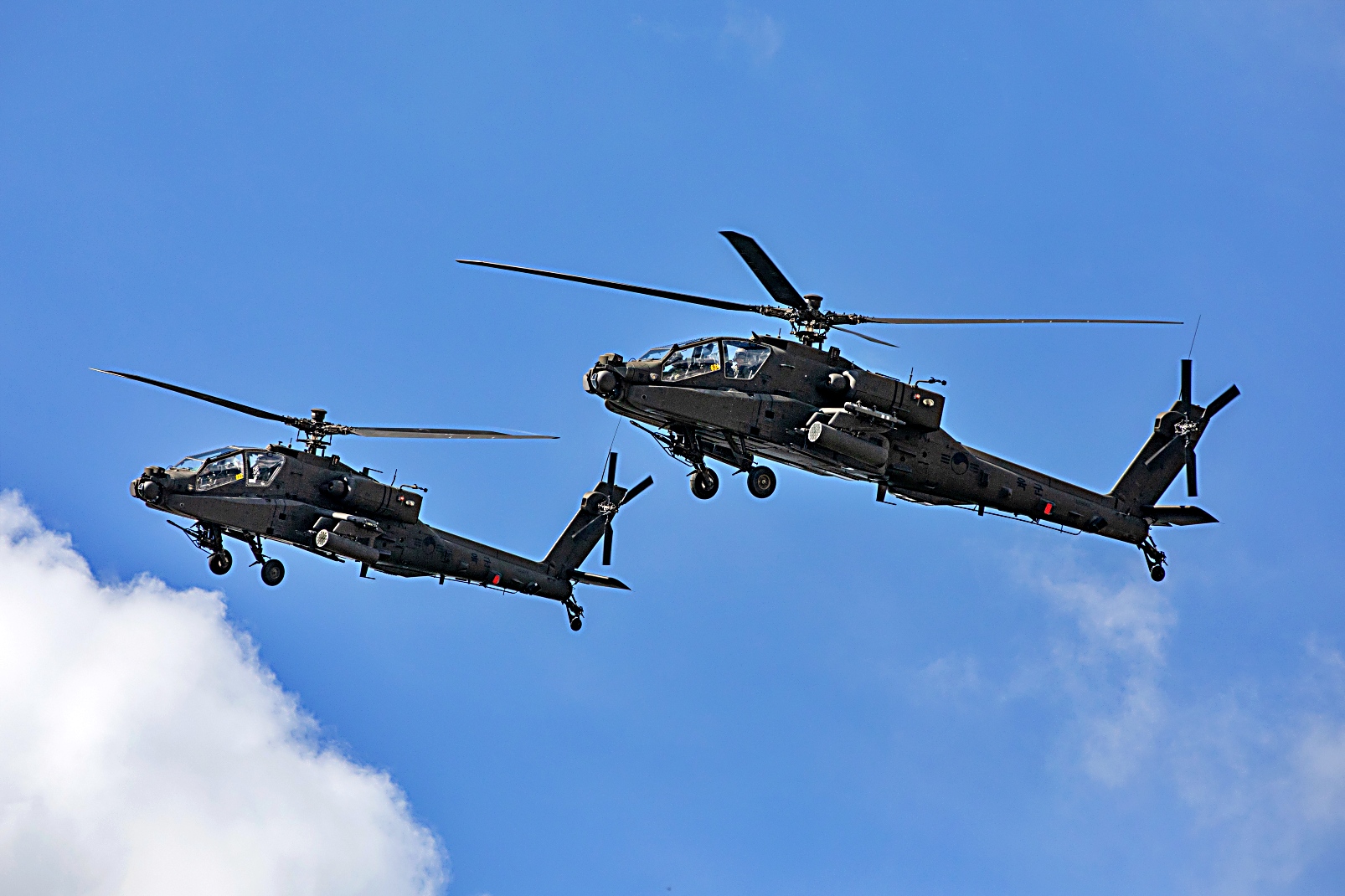 한국 육군의 AH-64E Apache Guardian 헬기가 2025 지상군 페스티발에서 시범비행을 펼치고 있다. 완전 끝물에 망조인 AH-64E를 추가로 36대를 수조 들여 도입하려고 한 육방부 똥별 똥령들이 있었었다..개똘들 이거 취소된 건 신의 한수,