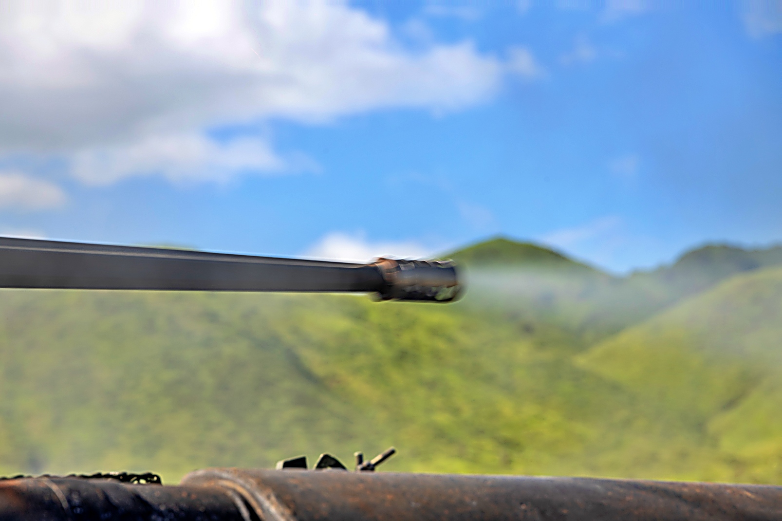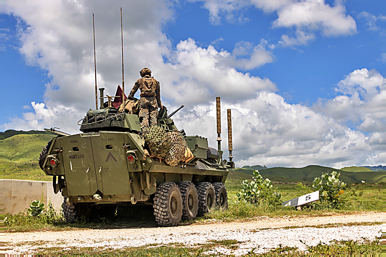 미국 해병대 제22해병원정군(특수작전능력보유) 소속 제6해병연대 제3대대 상륙팀 제2경장갑정찰대원들이 2025년 9월 23일 푸에르토리코 Camp Santiago에서 장착된 M242 25mm Bushmaster 체인기관포의 영점 사격 훈련을 실시했다.