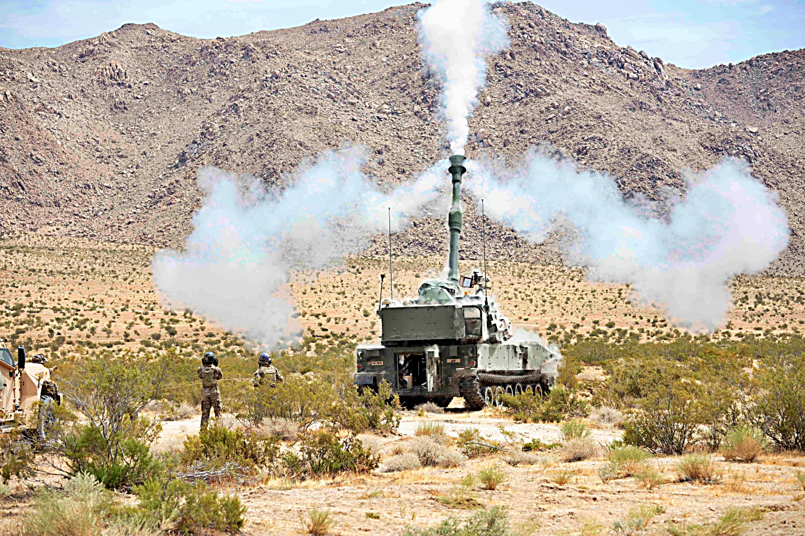 2024년 7월 18일, 캘리포니아주 Fort Irwin 소재 National Training Center에서 진행된 Rotation 24-09 훈련 중, 미 육군 제3보병사단 제1기갑여단전투단 제41야전포병연대 소속 병사가 M109A6 Paladin 자주포가 사격 훈련을 실시했다.