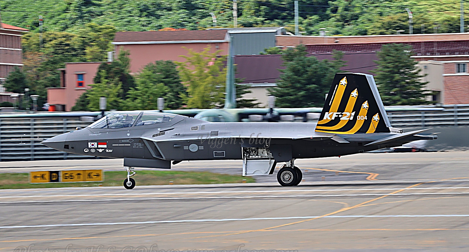 17일부터 시작되는 ADEX25를 앞두고 16일 프레스데이에서 KF-21 보라매 전투기 4호기와 5호기가 참가했다.