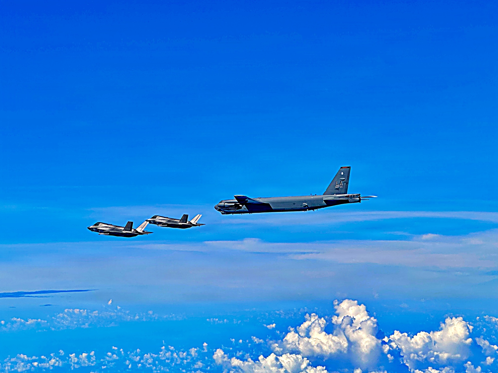 2025년 10월 15일, 미 해군사령부 관할 지역에서 미 해병대 VMFA-225 전투공격비행대대 소속 F-35B Lightning II 공격기와 미 공군 제2폭격비행단 소속 B-52H Stratofortress 폭격기가 함께 비행하며 통합작전을 수행했다. 미 공군의 B-52H 장거리 전략 폭격기들이 훈련 작전을 수행하며, 초국가적 위협에 대한 미 공군의 글로벌 도달 범위와 전략적 타격 능력을 과시했다.