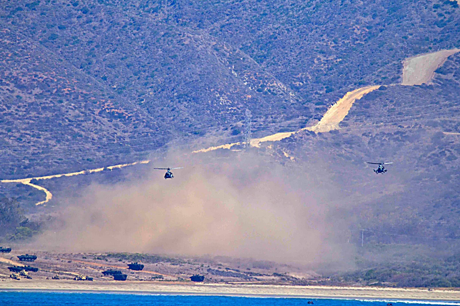 미국 해병대 제3해병항공단 소속 HMLA-267 경공격헬기비행대대의 UH-1Y Venom 헬기와 HMLA-367 경공격헬기비행대대의 AH-1Z Viper 공격헬기 및 VMM-165 및 VMM-163 중틸트로터비행대 소속 CH-53E Super Stallion 헬기등이 2025년 10월 18일 캘리포니아주 Camp Pendleton 해병대 기지에서 열린 해병대 창설 250주년 상륙능력 시연 지원을 위해 비행 작전을 수행하고 있다. 또한 Camp Pendleton 해병대 기지에서 발진한 제3해병항공단 소속 미 해병대 항공기들이 편대를 이루어 바다위를 비행하며 위용을 과시했다.